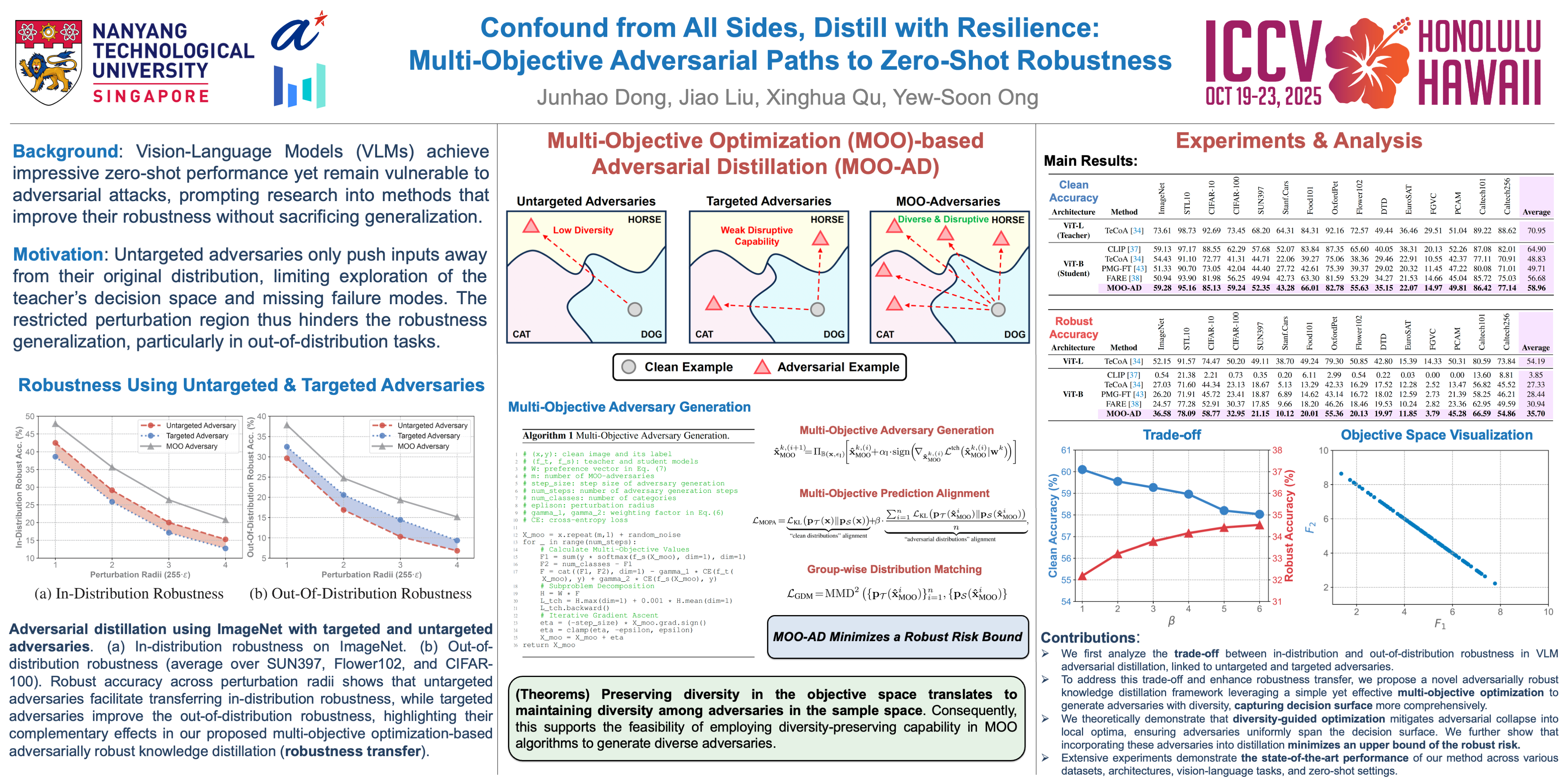 Adversarially robust knowledge distillation transfers the robustness of a large-scale teacher model to a lightweight student while preserving natural performance. However, foundation Vision-Language Models (VLMs) also demand the transfer of zero-shot inference capabilities. We find that standard robust distillation using untargeted adversarial examples fails to transfer out-of-distribution (zero-shot) robustness, as these adversaries primarily push inputs away from their original distribution, exploring a limited portion of the teacher’s decision space and miss more diverse failure modes. A natural solution is to generate multiple targeted adversaries that traverse diverse paths across decision boundaries. Thus, these adversaries probe a broader region of the teacher’s decision surface. However, naive targeted adversary optimization often converges to local optima within a single category’s decision region, limiting the diversity. To address this, we propose a Multi-Objective Optimization (MOO)-based adversarial distillation framework that transfers robustness from large VLMs to lightweight ones by exploiting adversaries with two main objectives: misclassification and category-level adversarial diversity. Theoretically, we show that optimizing for diversity mitigates adversarial collapse into local optima, ensuring adversaries span multiple decision regions and capture the teacher’s generalizable robust features. Extensive experiments demonstrate the superiority of our method over state-of-the-art adversarial learning across diverse scenarios.
