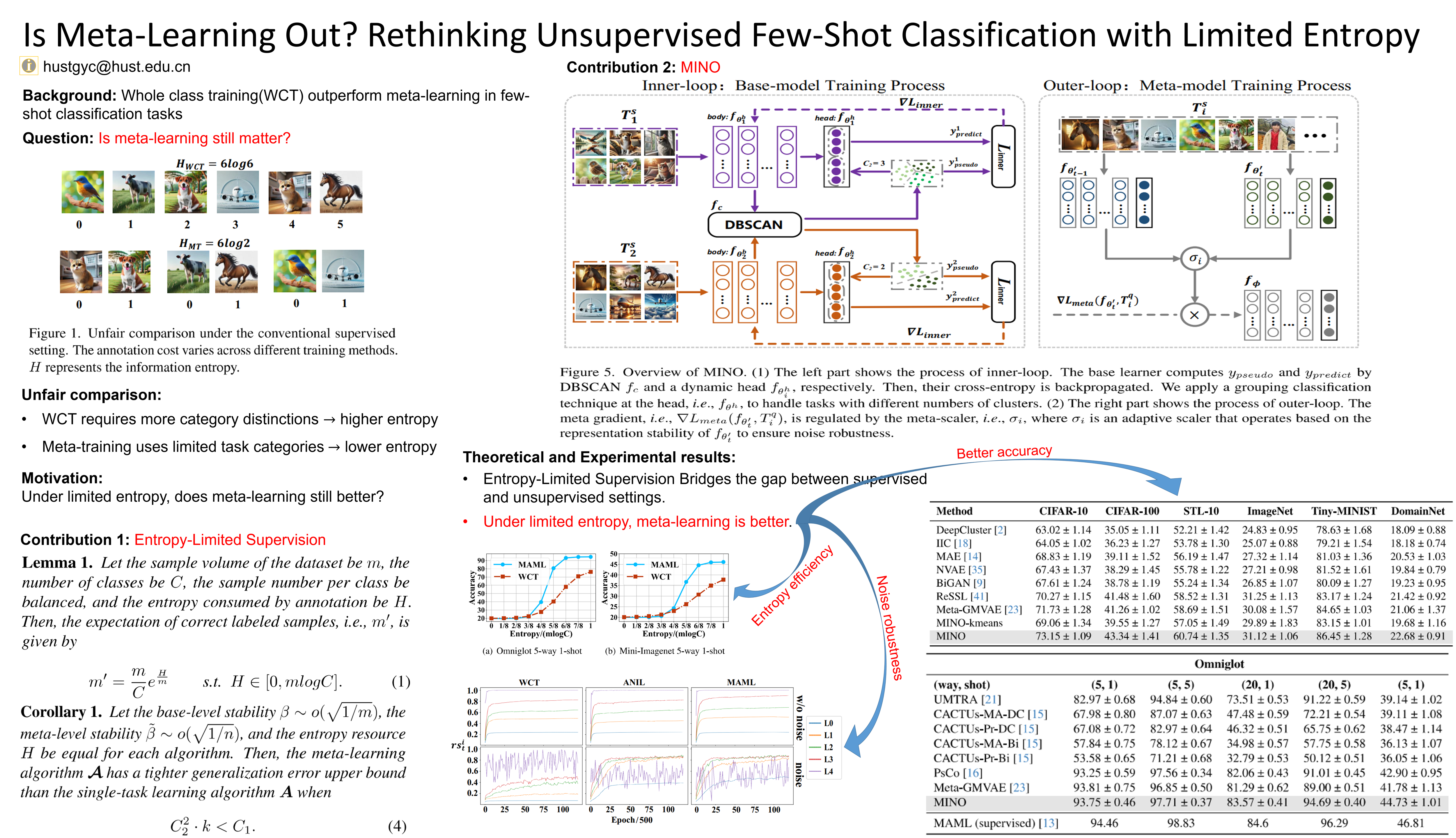 Meta-learning is a powerful paradigm for tackling few-shot tasks. However, recent studies indicate that models trained with the whole-class training strategy can achieve comparable performance to those trained with meta-learning in few-shot classification tasks. To demonstrate the value of meta-learning, we establish an entropy-limited supervised setting for fair comparisons. Through both theoretical analysis and experimental validation, we establish that meta-learning has a tighter generalization bound compared to whole-class training. We unravel that meta-learning is more efficient with limited entropy and is more robust to label noise and heterogeneous tasks, making it well-suited for unsupervised tasks. Based on these insights, We propose MINO, a meta-learning framework designed to enhance unsupervised performance. MINO utilizes the adaptive clustering algorithm DBSCAN with a dynamic head for unsupervised task construction and a stability-based meta-scaler for robustness against label noise. Extensive experiments confirm its effectiveness in multiple unsupervised few-shot and zero-shot tasks.