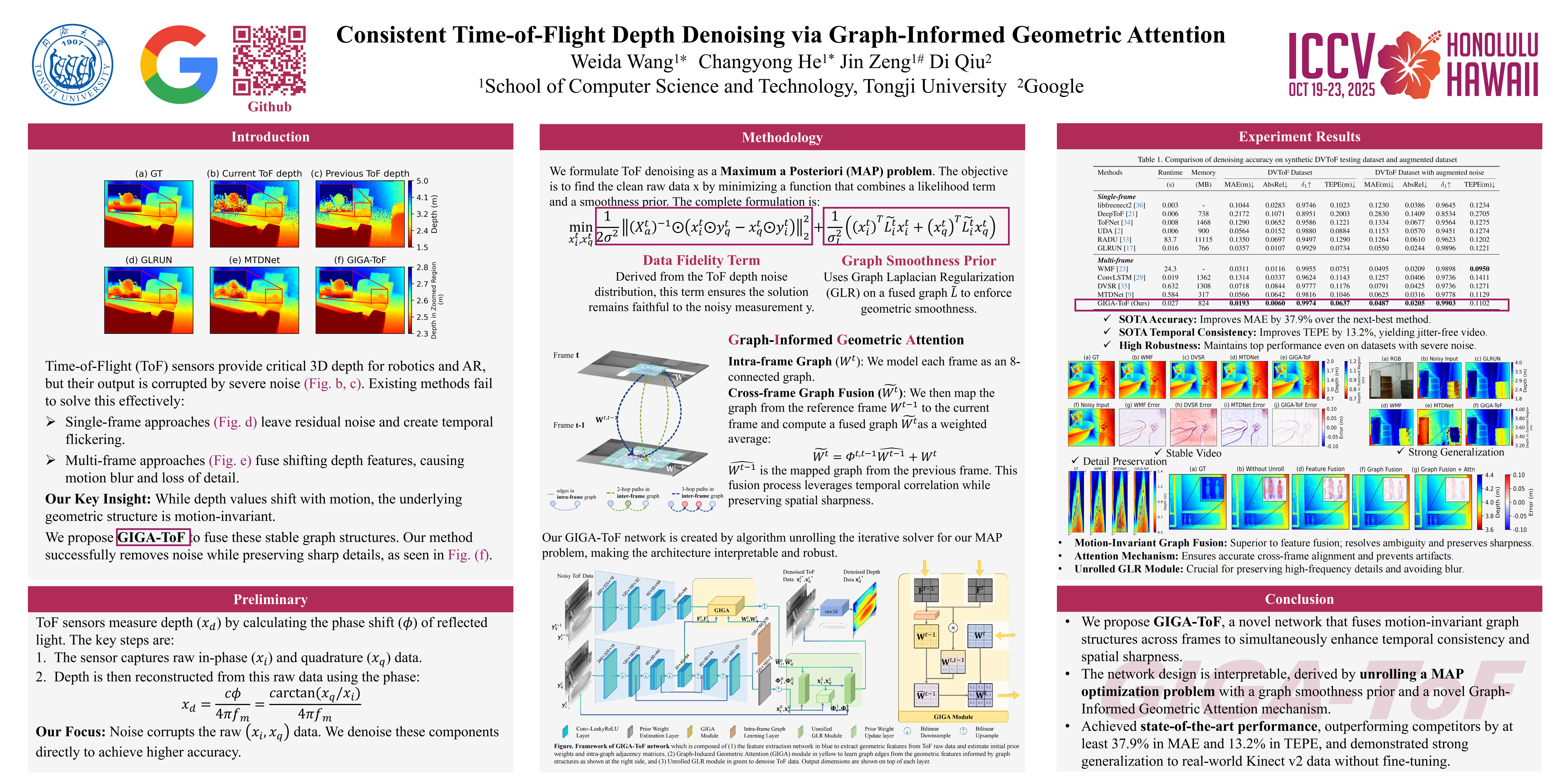 Consistent Time-of-Flight Depth Denoising via Graph-Informed Geometric Attention