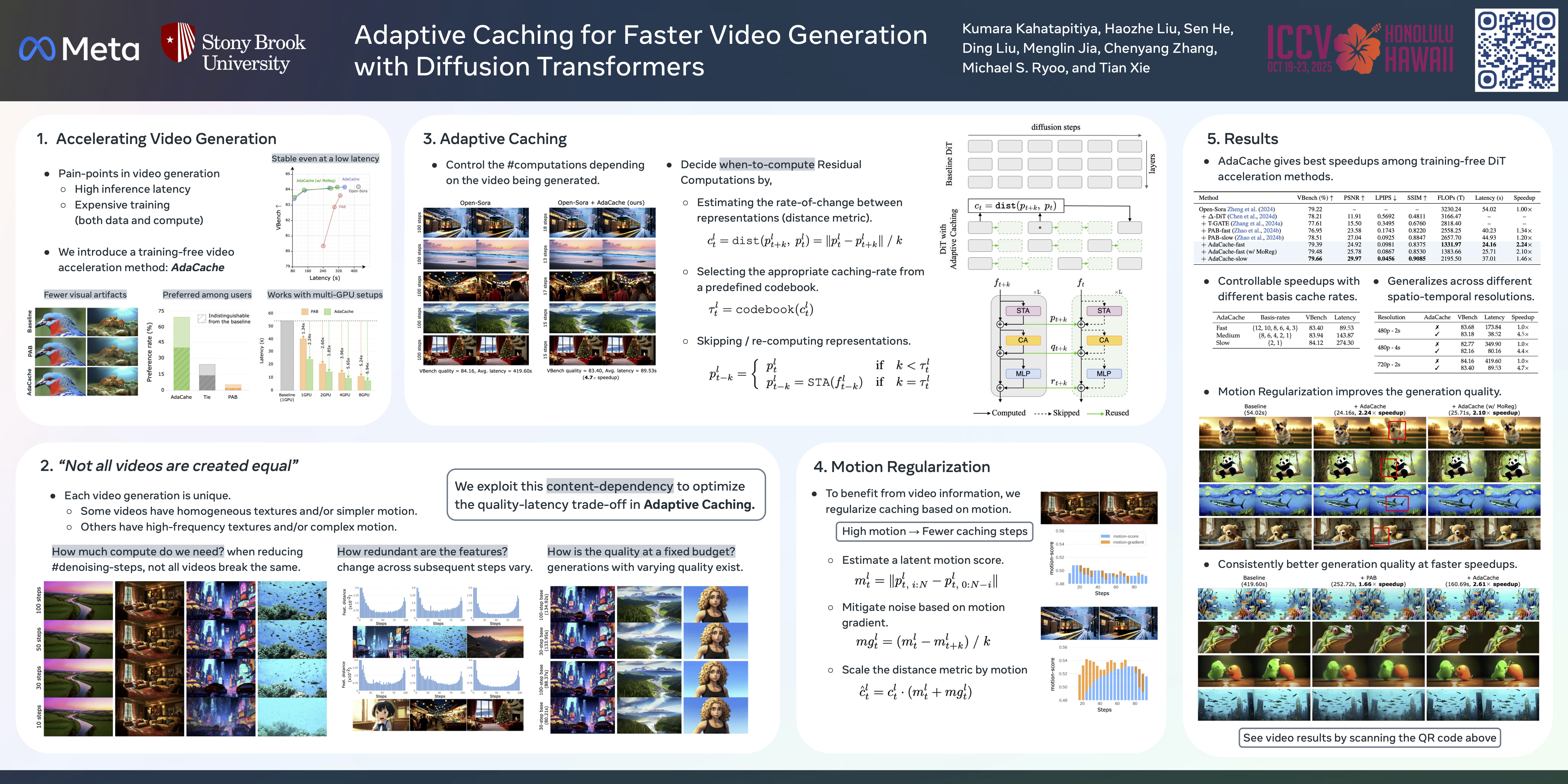 Generating temporally-consistent high-fidelity videos can be computationally expensive, especially over longer temporal spans. More-recent Diffusion Transformers (DiTs)--- despite making significant headway in this context--- have only heightened such challenges as they rely on larger models and heavier attention mechanisms, resulting in slower inference speeds. In this paper, we introduce a method to accelerate video DiTs, termed Adaptive Caching (AdaCache), which is motivated by the fact that 'not all videos are created equal': meaning, some videos require fewer denoising steps to attain a reasonable quality than others. Building on this, we not only cache computations through the diffusion process, but also devise a caching schedule tailored to each video generation, maximizing the quality-latency trade-off. We further introduce a Motion Regularization (MoReg) scheme to utilize video information within AdaCache, essentially controlling the compute allocation based on motion content. Altogether, our plug-and-play contributions grant significant inference speedups (e.g. up to 4.7x on Open-Sora 720p - 2s video generation) without sacrificing the generation quality, across multiple video DiT baselines.