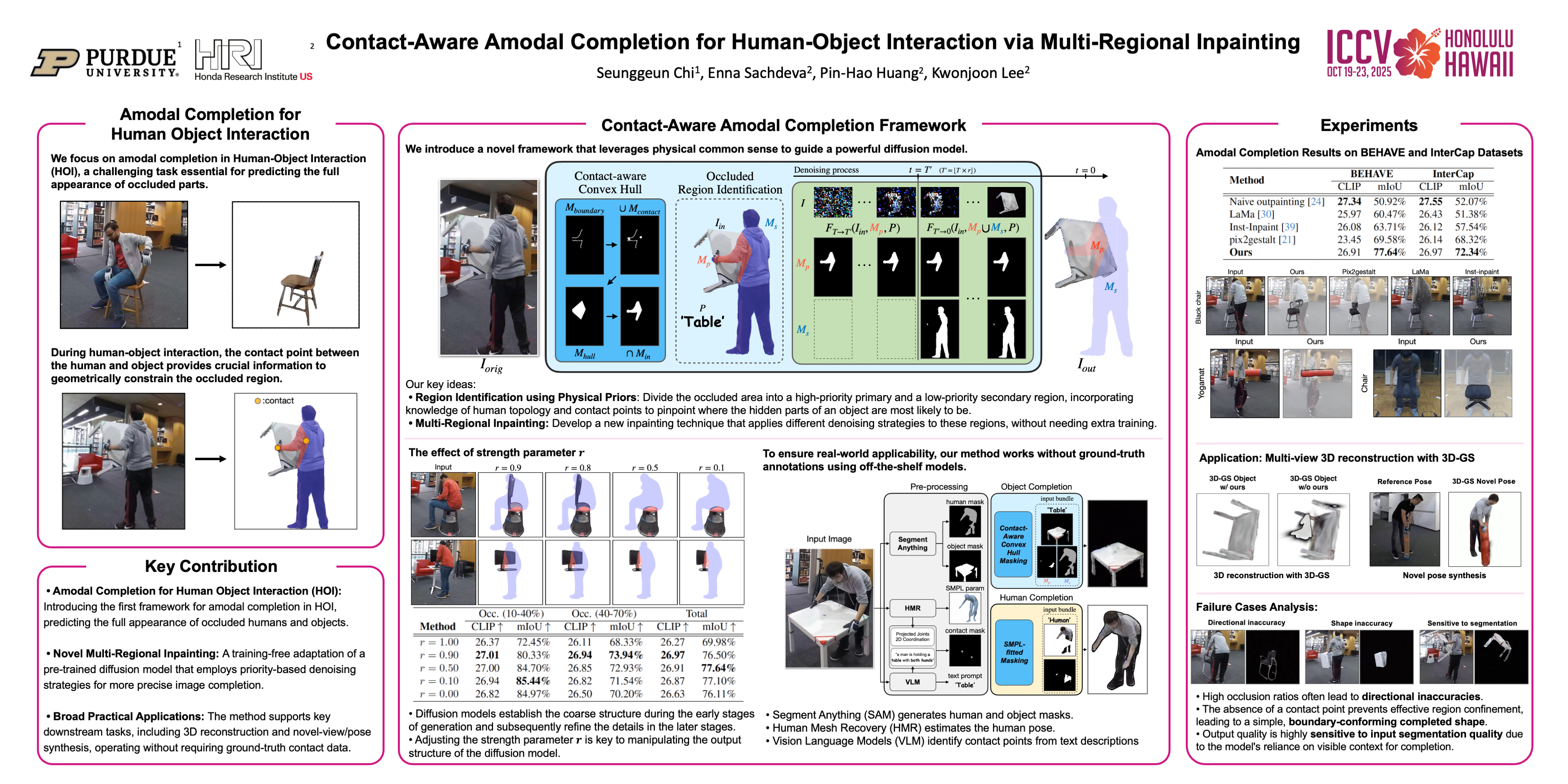 Contact-Aware Amodal Completion for Human-Object Interaction via Multi-Regional Inpainting