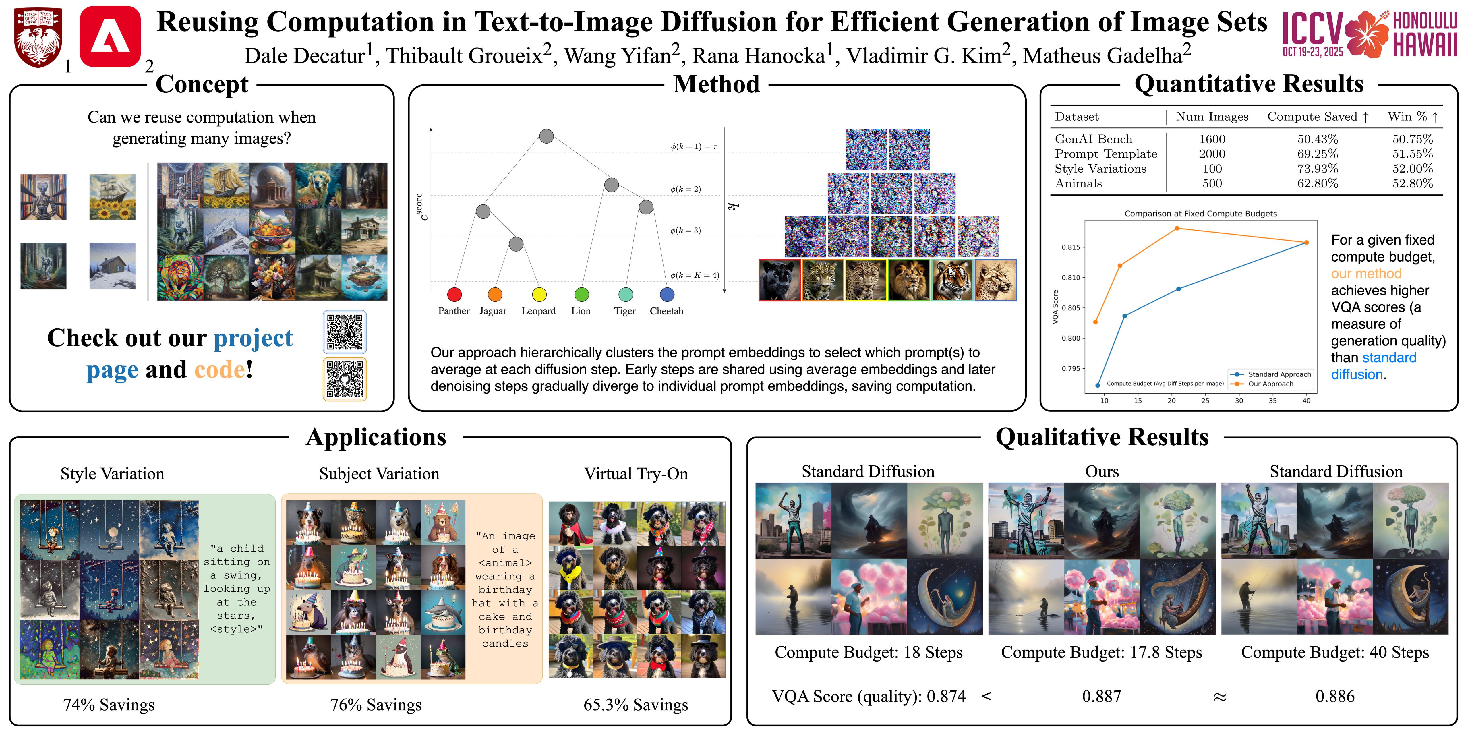 Text-to-image diffusion models enable high-quality image generation but are computationally expensive, especially when producing large image collections. While prior work optimizes per-inference efficiency, we explore an orthogonal approach: reducing redundancy across multiple correlated prompts. Our key insight leverages the coarse-to-fine nature of diffusion models, where early denoising steps capture shared structures among similar prompts. We propose a training-free method that clusters prompts based on semantic similarity and shares computation in early diffusion steps. Experiments show that for models trained conditioned on image embeddings, our approach significantly reduces compute cost while improving image quality. By leveraging UnClip’s text-to-image prior, we enhance diffusion step allocation for greater efficiency. Our method seamlessly integrates with existing pipelines, scales with prompt sets, and reduces the environmental and financial burden of large-scale text-to-image generation.