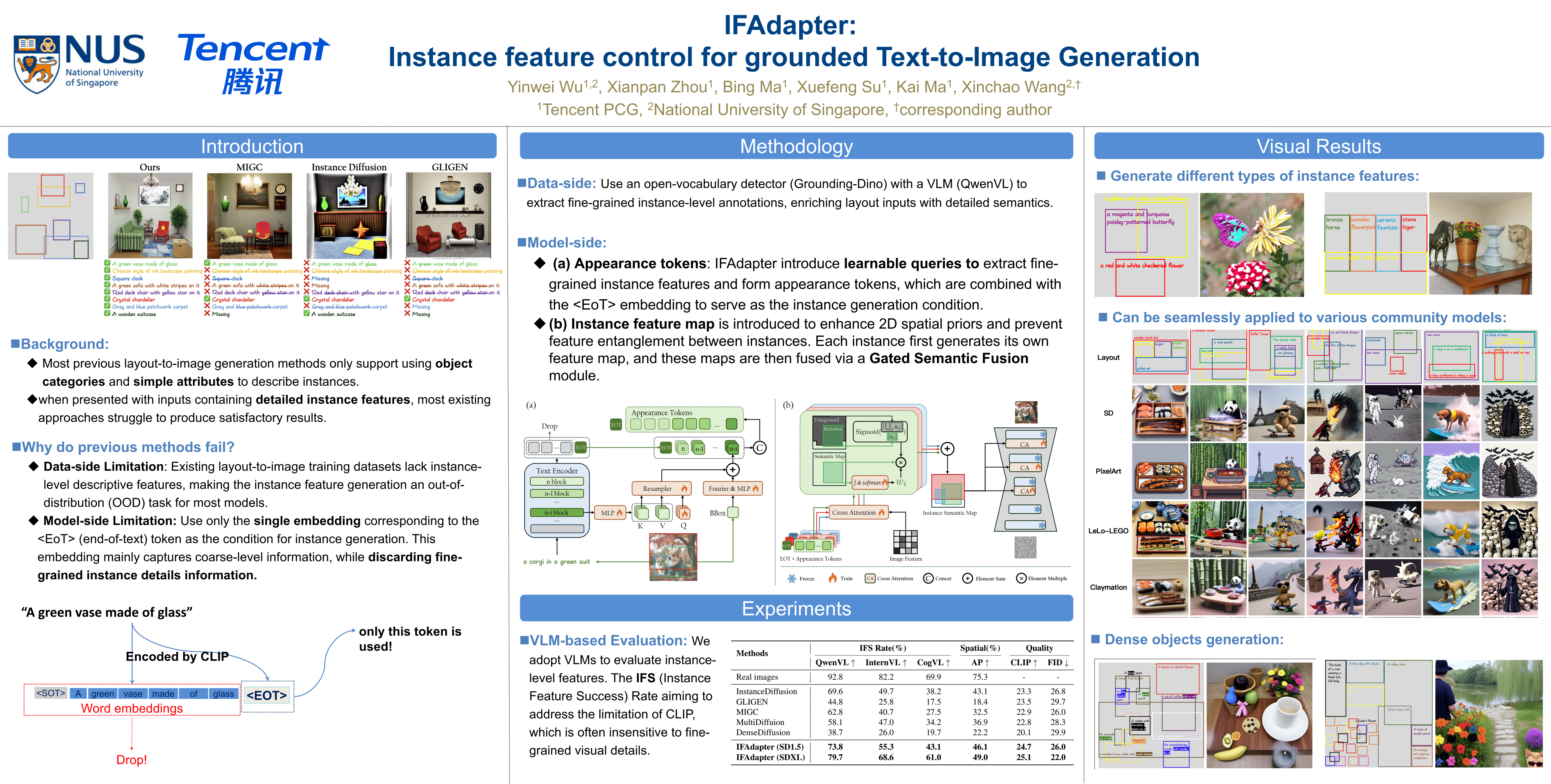 While Text-to-Image (T2I) diffusion models excel at generating visually appealing images of individual instances, they struggle to accurately position and control the features generation of multiple instances. The Layout-to-Image (L2I) task was introduced to address the positioning challenges by incorporating bounding boxes as spatial control signals, but it still falls short in generating precise instance features. To address this Instance Feature Generation (IFG) task, we introduce the Instance Feature Adapter (IFAdapter). The IFAdapter enhances feature depiction by incorporating additional appearance tokens and utilizing an Instance Semantic Map to align instance-level features with spatial locations. The IFAdapter guides the diffusion process in a plug-and-play module, making it adaptable to various community models. For evaluation, we contribute an IFG benchmark and develop a verification pipeline to objectively compare models’ abilities to generate instances with accurate positioning and features. Experimental results demonstrate that IFAdapter outperforms other models in both quantitative and qualitative evaluations.