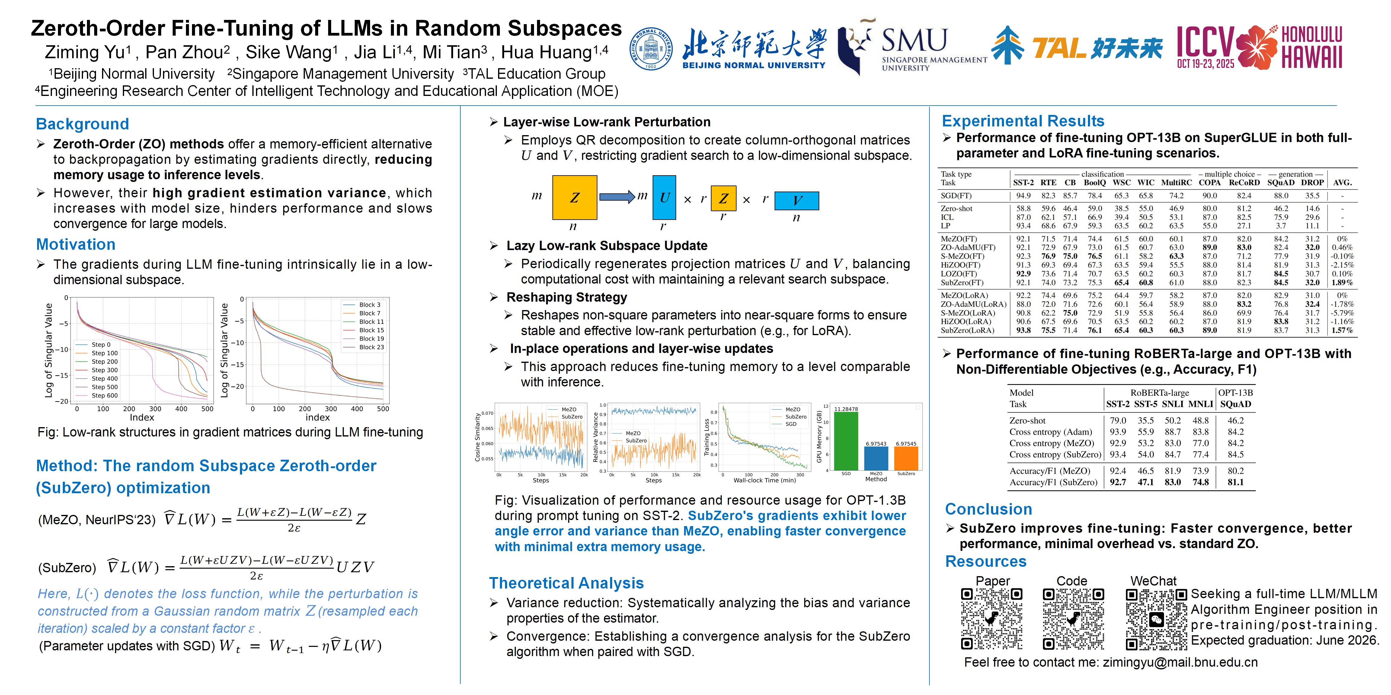 Fine-tuning Large Language Models (LLMs) has proven effective for a variety of downstream tasks. However, as LLMs grow in size, the memory demands for backpropagation become increasingly prohibitive. Zeroth-order (ZO) optimization methods offer a memory-efficient alternative by using forward passes to estimate gradients, but the variance of gradient estimates typically scales linearly with the model's parameter dimension—a significant issue for LLMs. In this paper, we propose the random Subspace Zeroth-order (SubZero) optimization to address the challenges posed by LLMs' high dimensionality. We introduce a low-rank perturbation tailored for LLMs that significantly reduces memory consumption while improving performance. Additionally, we prove that our gradient estimation closely approximates the backpropagation gradient, exhibits lower variance than traditional ZO methods, and ensures convergence when combined with SGD. Experimental results show that SubZero enhances fine-tuning performance and achieves faster convergence compared to standard ZO approaches like MeZO across various language modeling tasks. The source code is in the supplementary and will be publicly released.