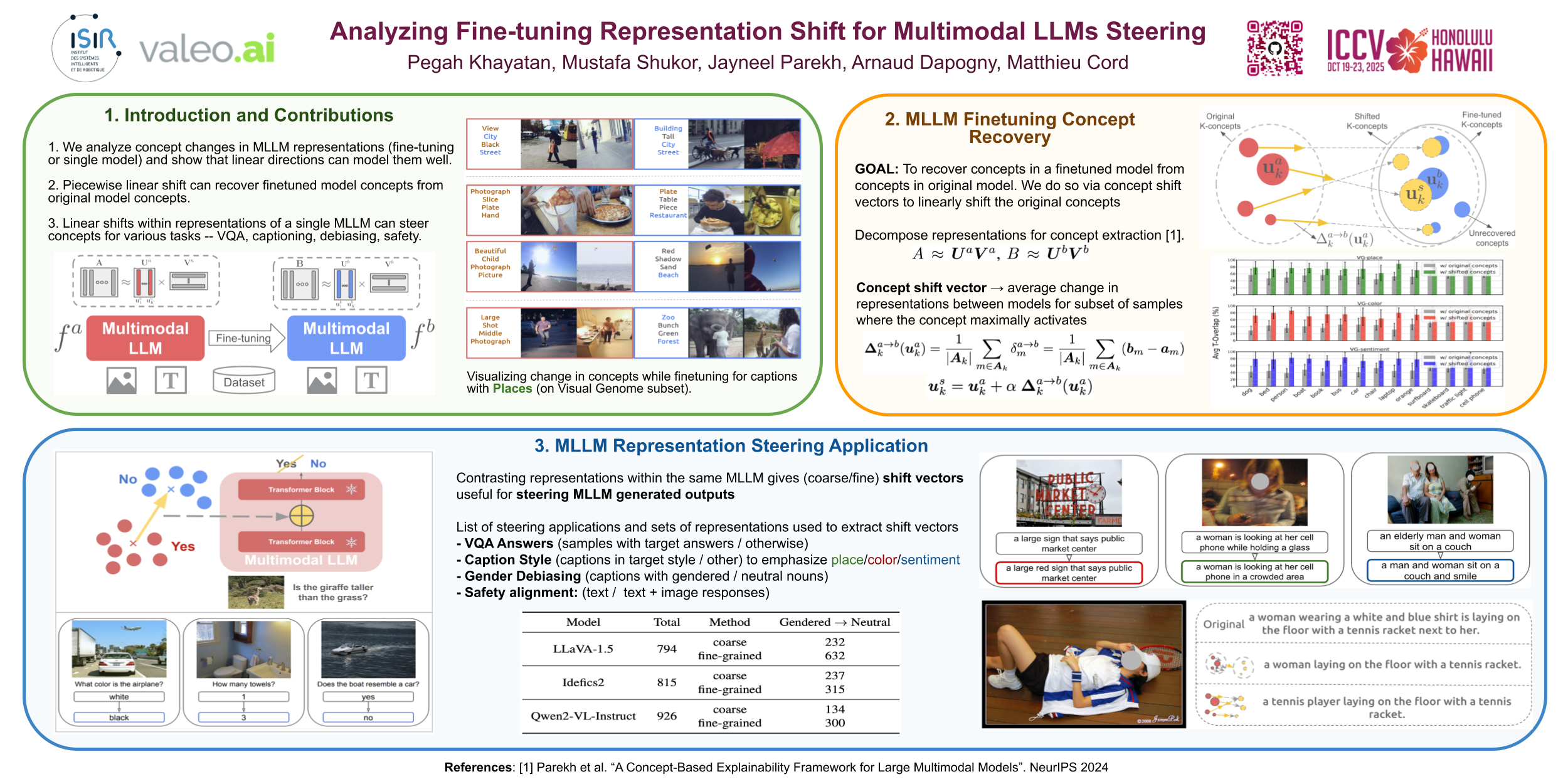 Multimodal LLMs have reached remarkable levels of proficiency in understanding multimodal inputs, driving extensive research to develop increasingly powerful models. However, far less attention has been given to understanding and explaining the underlying mechanisms of these models. Most existing explainability research examines these models only in their final states, overlooking the dynamic representational shifts that occur during training. In this work, we systematically analyze the evolution of hidden-state representations to reveal how fine-tuning alters a model’s internal structure to specialize on new multimodal tasks. Using a concept-based approach, we map hidden states to interpretable visual and textual concepts, enabling us to trace changes in encoded concepts across modalities as training progresses. We also demonstrate the use of shift vectors to capture this concepts changes. These shift vectors allow us to recover fine-tuned concepts by shifting those in the original model. Finally, we explore the practical impact of our findings on model steering, showing that we can adjust multimodal LLMs behaviors without any training, such as modifying answer types, captions style or biasing the model toward specific responses. Our work sheds light on how multimodal representations evolve through fine-tuning and offers a new perspective for interpreting model adaptation in multimodal tasks. The code will be made publicly available.