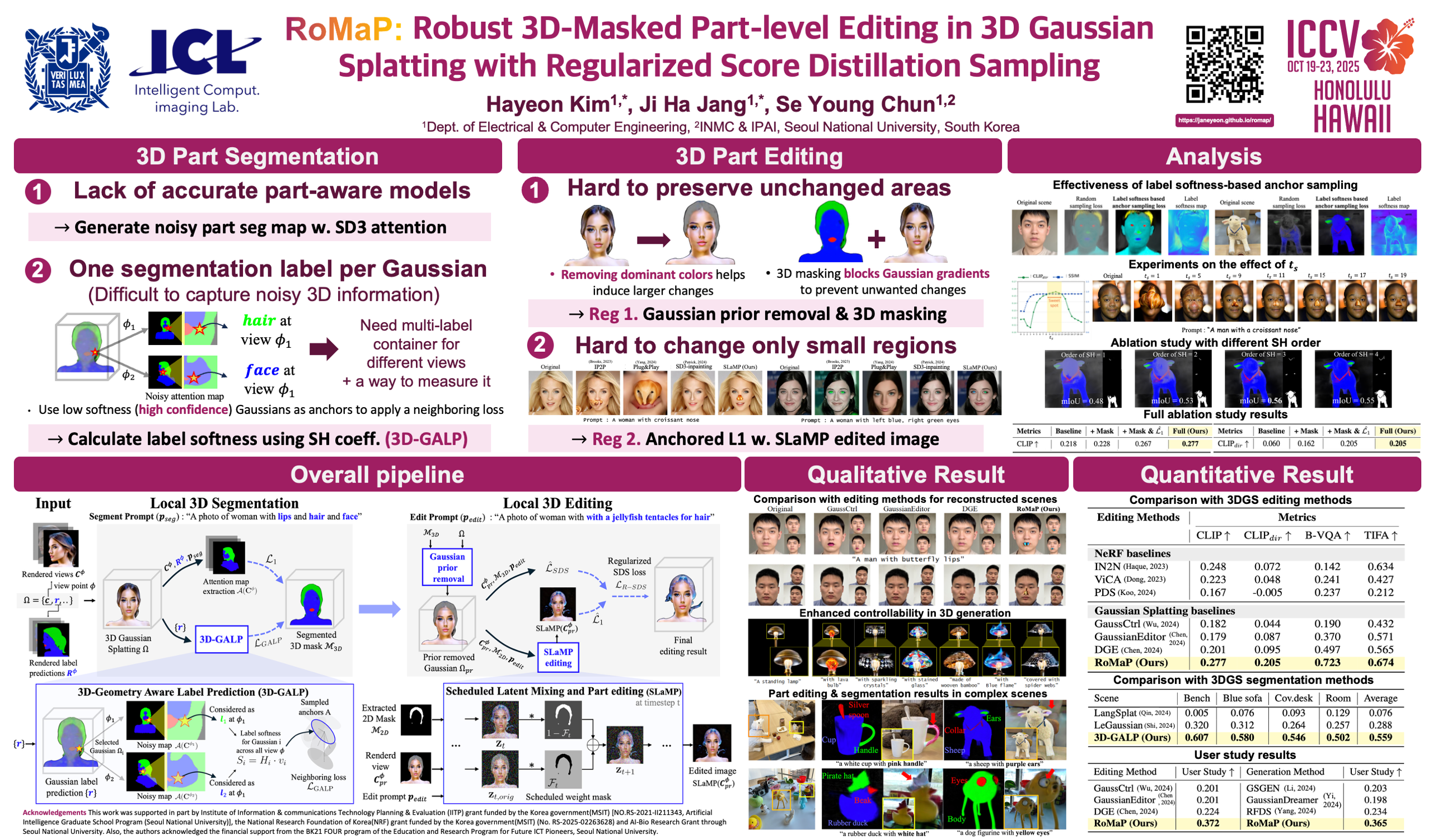 Due to limited 3D data, recent prior arts in 3D editing rely mainly on the Score Distillation Sampling (SDS) loss that edits and segments in 2D rendered views using pre-trained diffusion priors and then projects back onto 3D space to update the model. While these approaches are effective for 3D instance-level editing, they struggle with 3D part-level editing especially for Gaussian splatting due to inconsistent multi-view 2D part segmentations and inherently ambiguous SDS loss with localized nature of Gaussians. To address these limitations, we propose RoMaP, a novel local 3D Gaussian editing that enables drastic part-level changes. Firstly, we propose 3D-geometry aware label prediction (3D-GALP) exploiting the uncertainty in soft-label segmentations. Secondly, we propose a regularized SDS loss with masks that consists of a usual SDS loss with the predicted 3D mask and an L1 regularizer as an anchor loss for high-quality part-edited 2D images using our proposed scheduled latent mixing and part editing (SLaMP) method. Our SDS loss improves flexibility in local editing by removing 3D masked regions, allowing changes beyond existing context. SLaMP uses the projected 2D mask of the predicted 3D mask to confine modifications to the target region while preserving contextual coherence. Experimental results demonstrate that our RoMaP achieves state-of-the-art performance in local 3D editing for reconstructed and generated 3D Gaussian scenes and objects qualitatively and quantitatively, making it possible for more robust 3D-masked part-level editing in 3D Gaussian splatting.