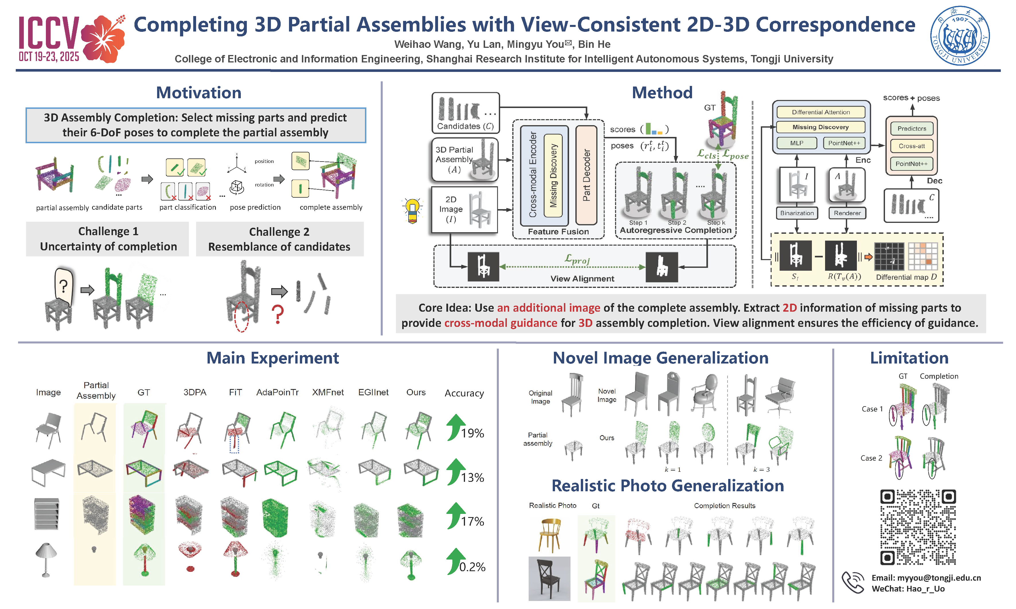 Completing 3D Partial Assemblies with View-Consistent 2D-3D Correspondence