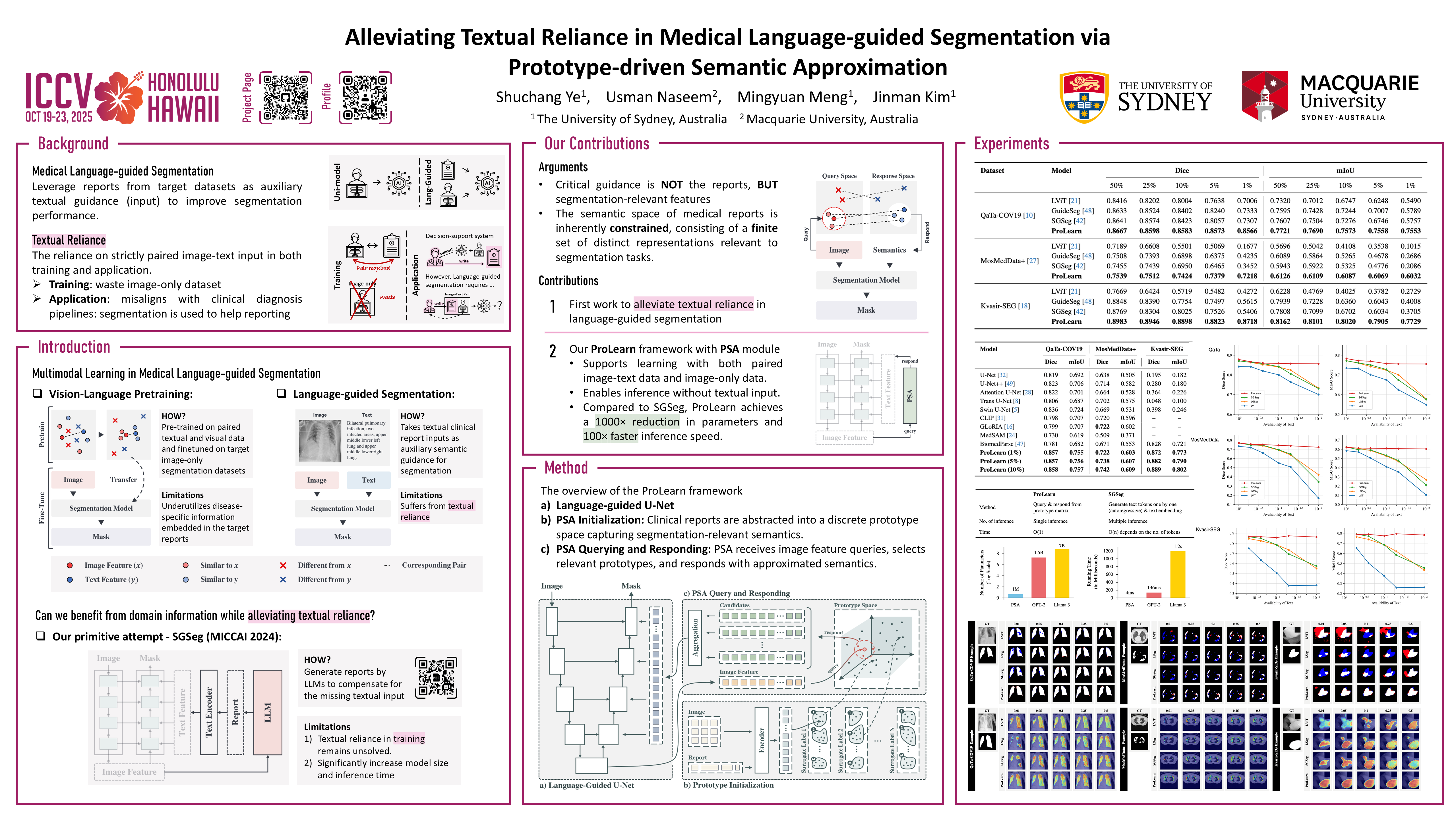 Medical language-guided segmentation, integrating textual clinical reports to enhance image segmentation, has demonstrated significant improvements over unimodal approaches. However, its inherent reliance on paired image-text input, which we refer to as textual reliance, presents two fundamental limitations: 1) many medical segmentation datasets lack paired reports, leaving a substantial portion of image-only data underutilized for training; and 2) inference is limited to retrospective analysis of cases with paired reports, limiting its applicability in most clinical scenarios where segmentation typically precedes reporting. To address these limitations, we propose ProLearn, the first Prototype-driven Learning framework for language-guided segmentation that fundamentally alleviates textual reliance. At its core, in ProLearn, we introduce a novel Prototype-driven Semantic Approximation (PSA) module to enable approximation of semantic guidance from textual input. PSA initializes a discrete and compact prototype space by distilling segmentation-relevant semantics from textual reports. Once initialized, it supports a query-and-respond mechanism which approximates semantic guidance for images without textual input, thereby alleviating textual reliance. Extensive experiments on QaTa-COV19 and MosMedData+ demonstrate that ProLearn outperforms state-of-the-art language-guided methods when limited text is available.