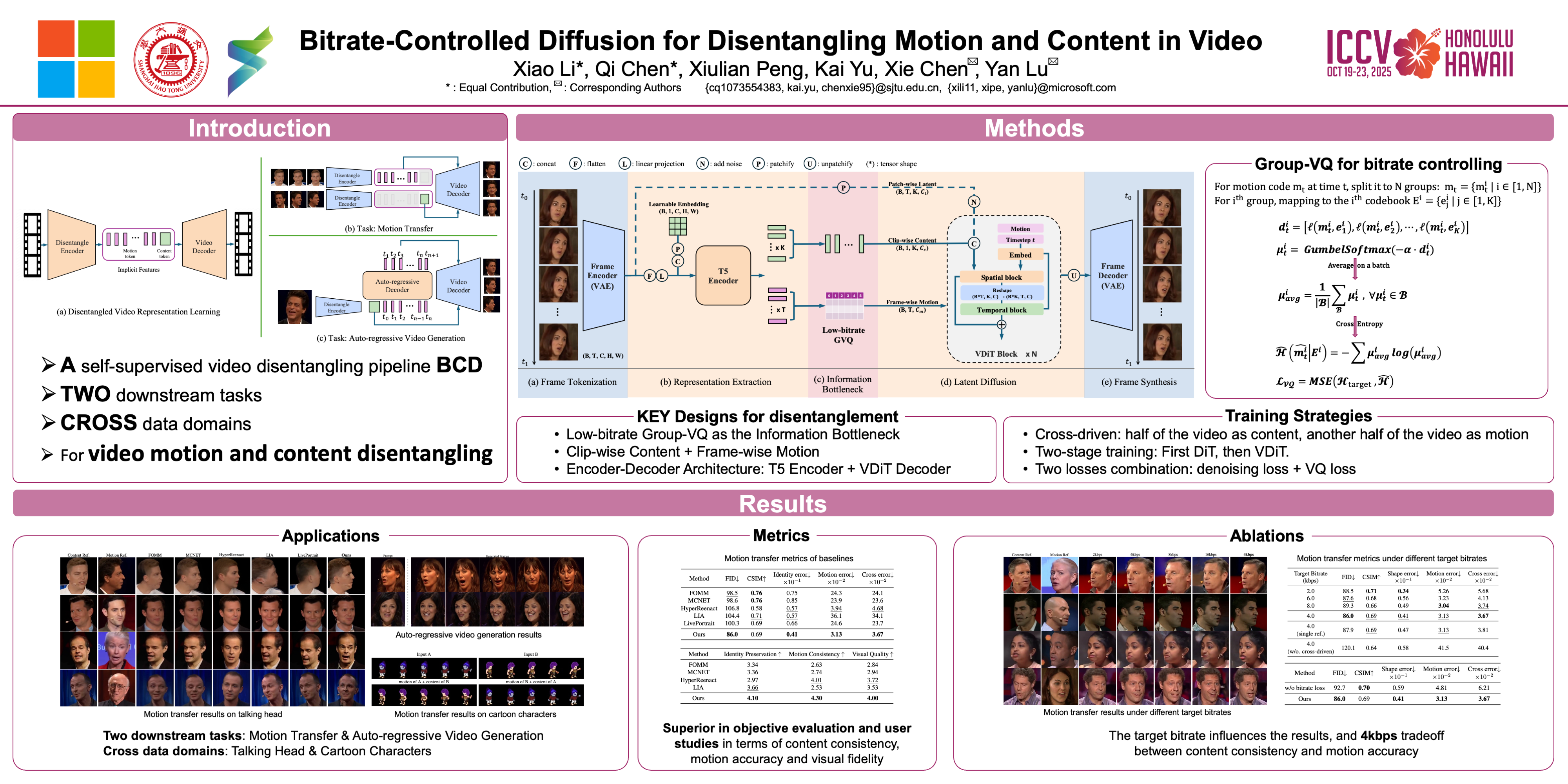 Bitrate-Controlled Diffusion for Disentangling Motion and Content in Video