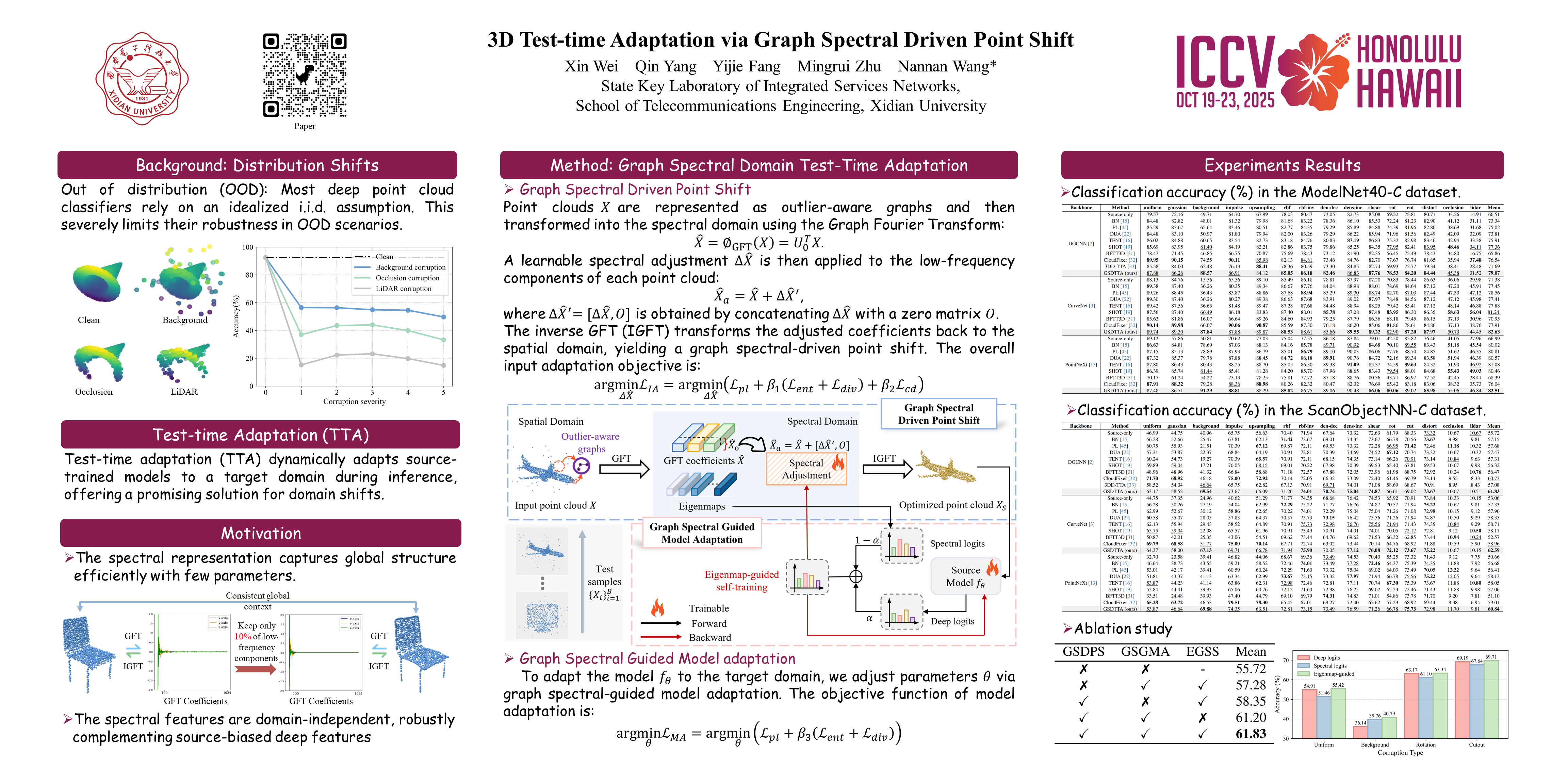 3D Test-time Adaptation via Graph Spectral Driven Point Shift