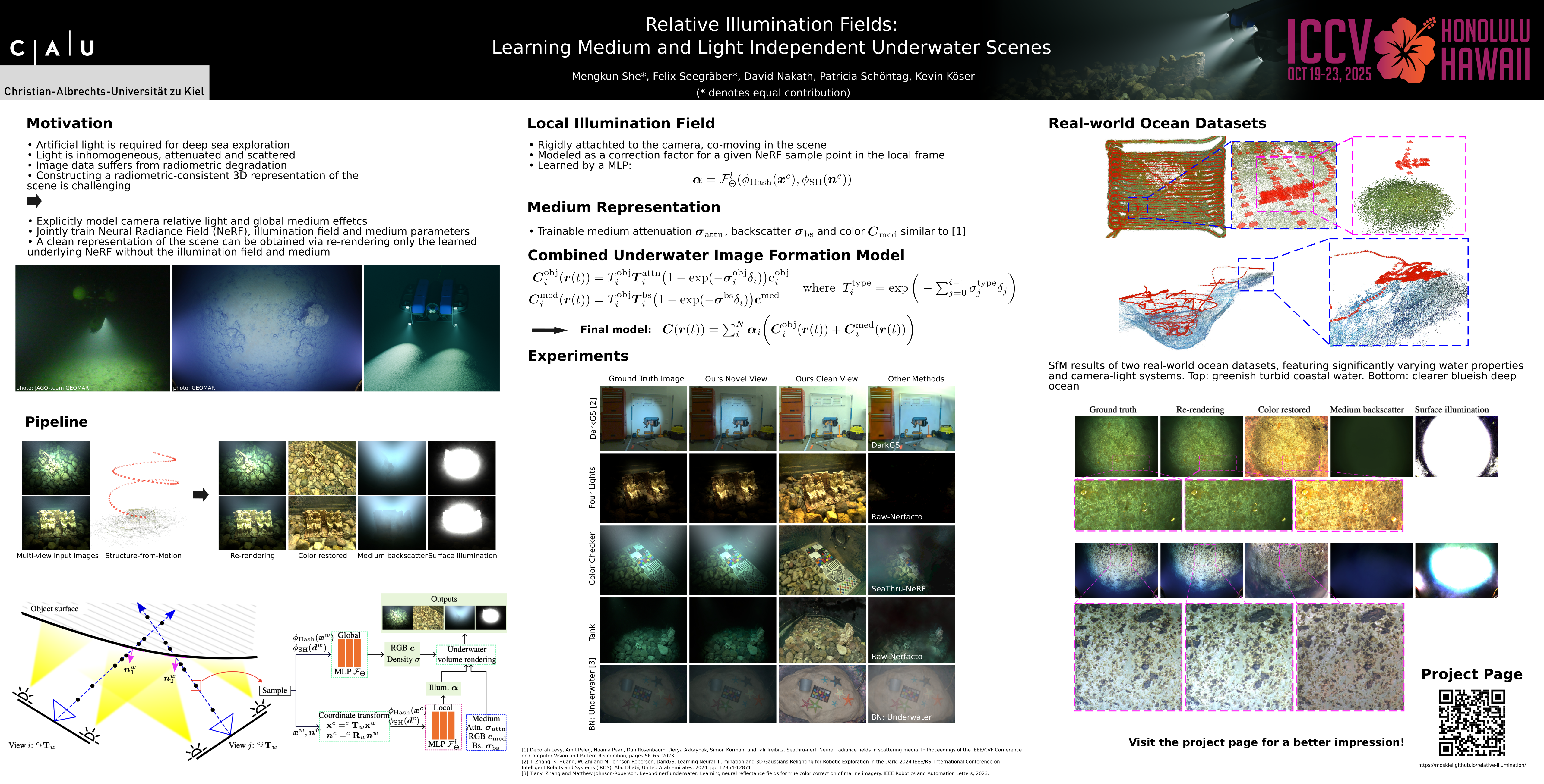 Relative Illumination Fields: Learning Medium and Light Independent Underwater Scenes