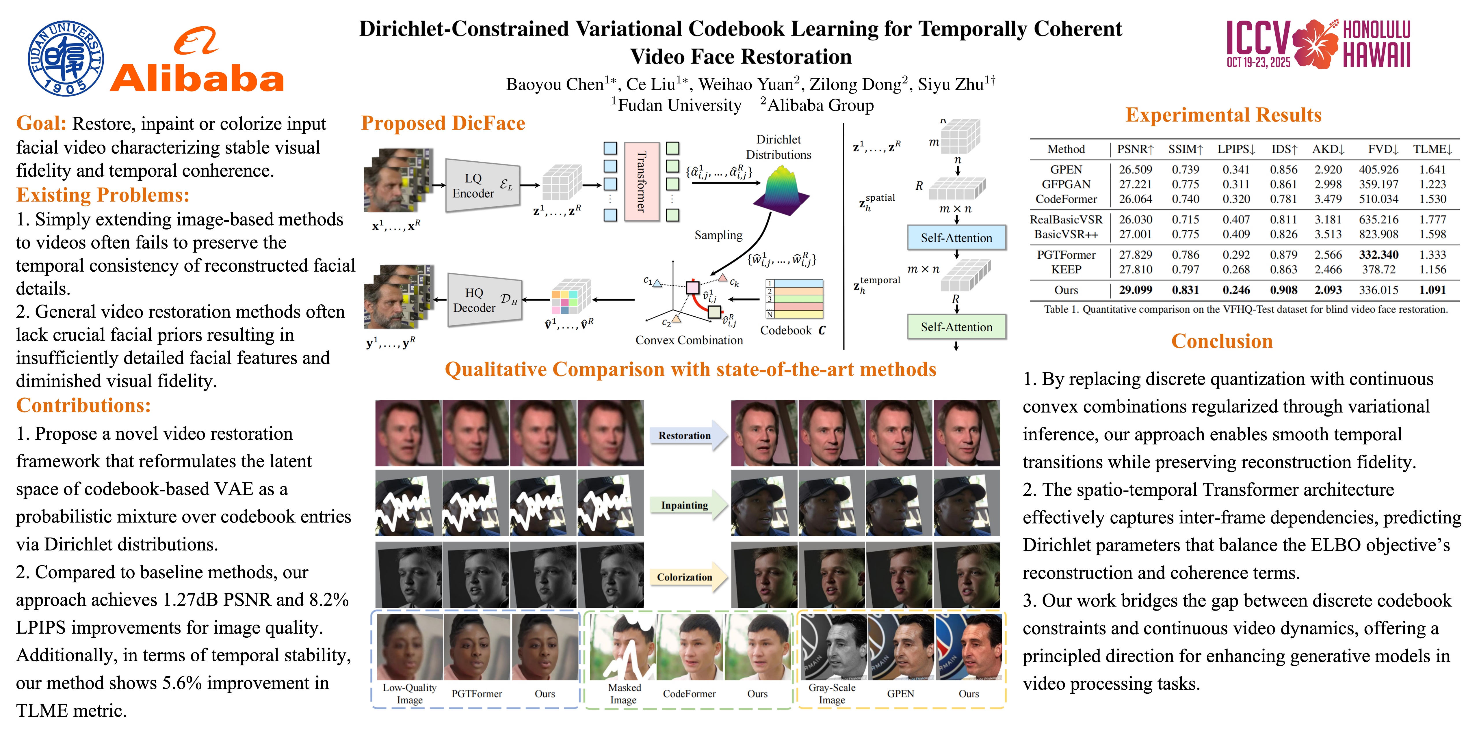 Dirichlet-Constrained Variational Codebook Learning for Temporally Coherent Video Face Restoration