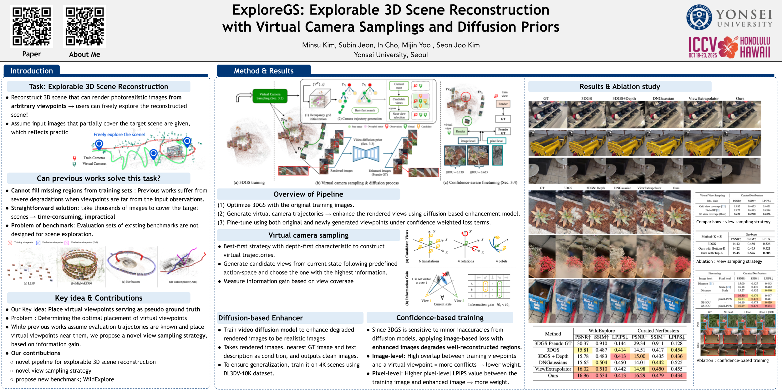 ExploreGS: Explorable 3D Scene Reconstruction with Virtual Camera Samplings and Diffusion Priors