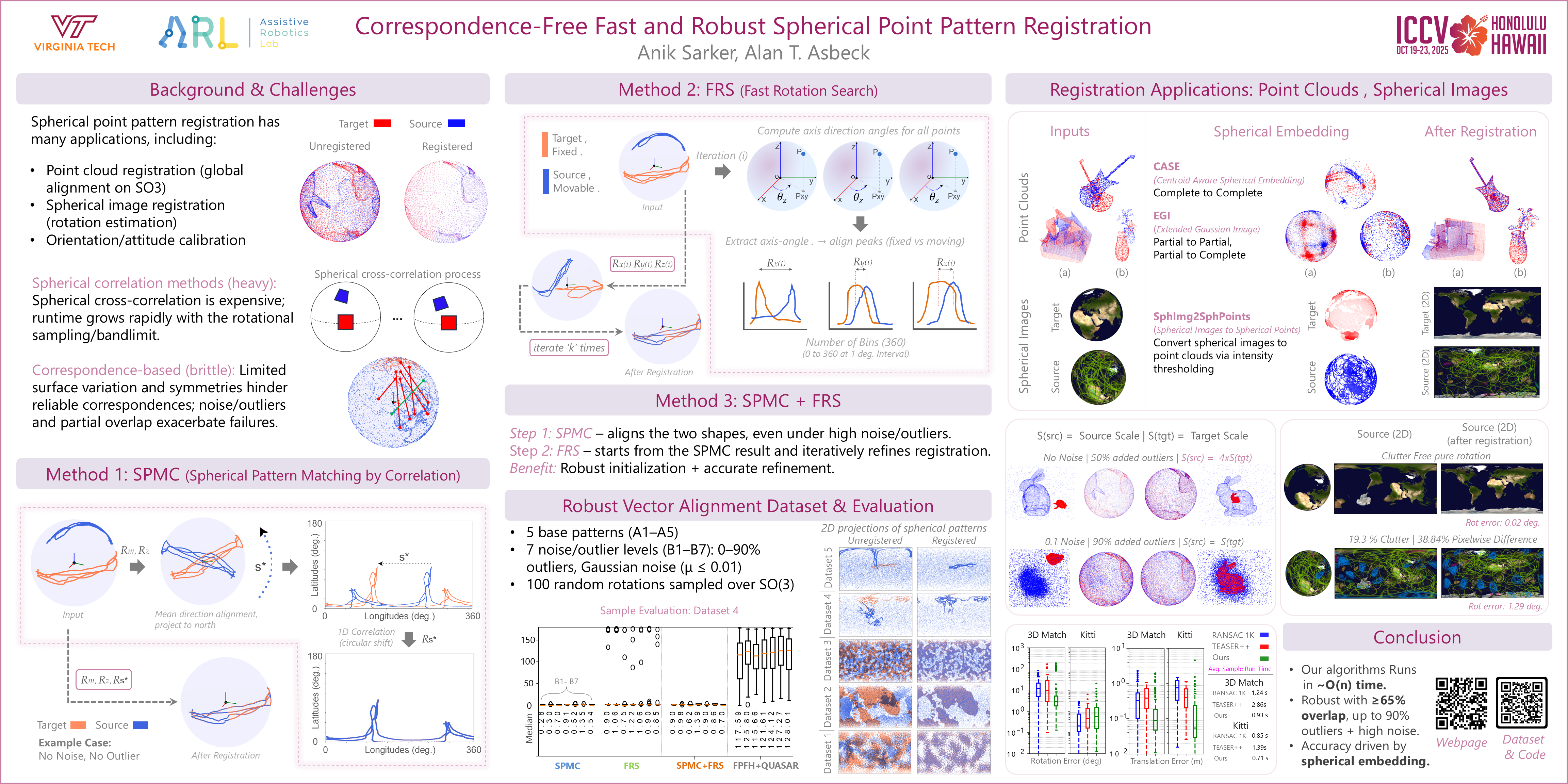 Existing methods for rotation estimation between two spherical ($\mathbb{S}^2$) patterns typically rely on spherical cross-correlation maximization between two spherical function. However, these approaches exhibit computational complexities greater than cubic $O(n^3)$ with respect to rotation space discretization and lack extensive evaluation under significant outlier contamination.To this end, we propose a rotation estimation algorithm between two spherical patterns with linear time complexity $O(n)$. Unlike existing spherical-function-based methods, we explicitly represent spherical patterns as discrete 3D point sets on the unit sphere, reformulating rotation estimation as a spherical point-set alignment (i.e., Wahba problem for 3D unit vectors). Given the geometric nature of our formulation, our spherical pattern alignment algorithm naturally aligns with the Wahba problem framework for 3D unit vectors. Specifically, we introduce three novel algorithms: (1) SPMC (Spherical Pattern Matching by Correlation), (2) FRS (Fast Rotation Search), and (3) a hybrid approach (SPMC+FRS) that combines the advantages of the previous two methods. Our experiments demonstrate that in the $\mathbb{S}^2$ domain and in correspondence-free settings, our algorithms are over 10x faster and over 10x more accurate than current state-of-the-art methods for the Wahba problem with outliers. We validate our approach through extensive simulations on a new dataset of spherical patterns, the ``Robust Vector Alignment Dataset."Furthermore, we adapt our methods to two real-world tasks: (i) Point Cloud Registration (PCR) and (ii) rotation estimation for spherical images. In the PCR task, our approach successfully registers point clouds exhibiting overlap ratios as low as 65\%. In spherical image alignment, we show that our method robustly estimates rotations even under challenging conditions involving substantial clutter (over 19\%) and large rotational offsets. Our results highlight the effectiveness and robustness of our algorithms in realistic, complex scenarios.Our Code is available in the attached link: https://anonymous.4open.science/r/RobustVectorAlignment-EC0E/README.md