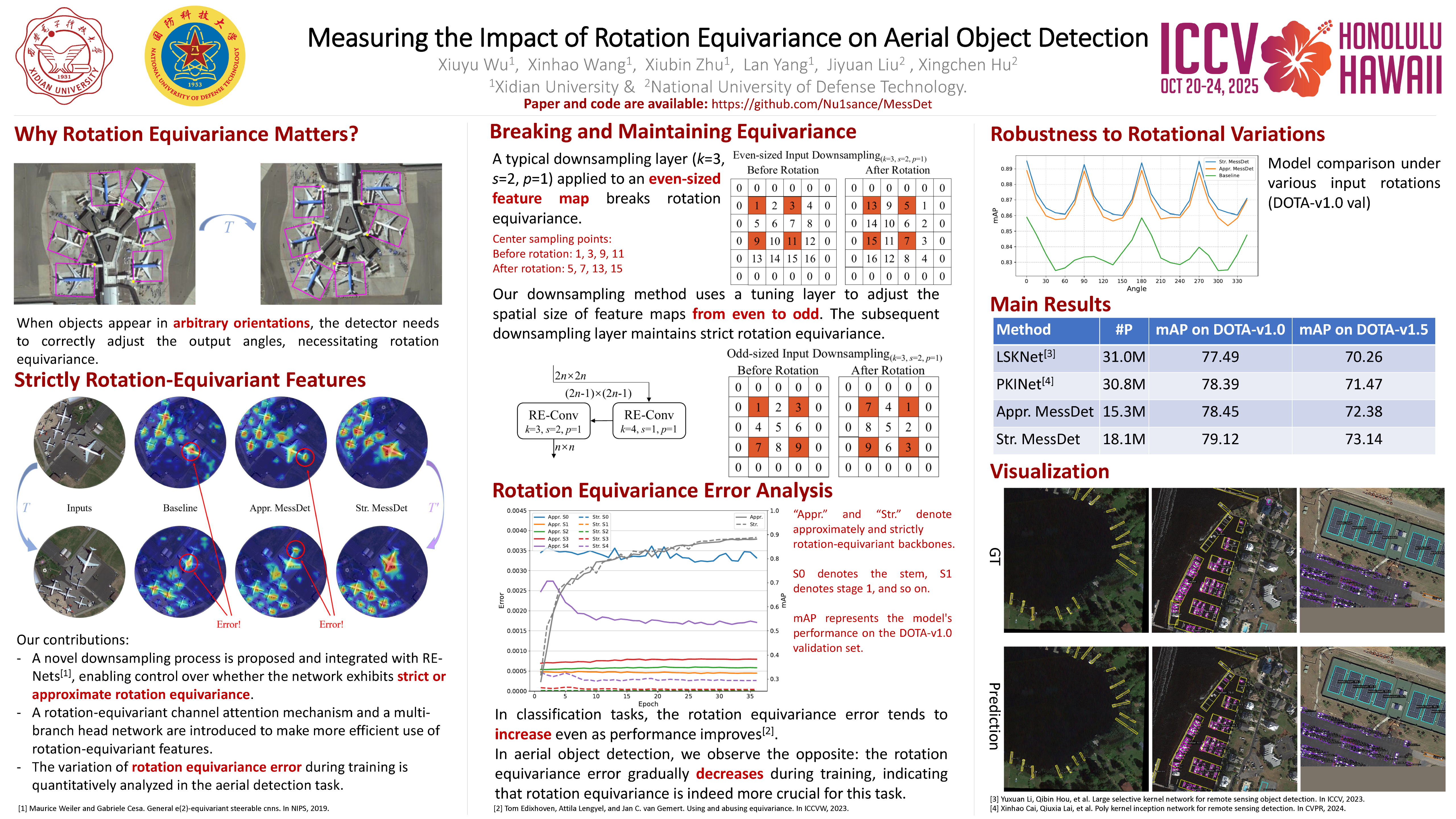 Due to the arbitrary orientation of objects in aerial images, rotation equivariance is a critical property for aerial object detectors. However, recent studies on rotation-equivariant aerial object detection remain scarce. Most detectors rely on data augmentation to enable models to learn approximately rotation-equivariant features. A few detectors have constructed rotation-equivariant networks, but due to the breaking of strict rotation equivariance by typical downsampling processes, these networks only achieve approximately rotation-equivariant backbones. Whether strict rotation equivariance is necessary for aerial image object detection remains an open question. In this paper, we implement a strictly rotation-equivariant backbone and neck network with a more advanced network structure and compare it with approximately rotation-equivariant networks to quantitatively measure the impact of rotation equivariance on the performance of aerial image detectors. Additionally, leveraging the inherently grouped nature of rotation-equivariant features, we propose a multi-branch head network that reduces the parameter count while improving detection accuracy. Based on the aforementioned improvements, this study proposes the Multi-branch head rotation-equivariant single-stage Detector (MessDet), which achieves state-of-the-art performance on the challenging aerial image datasets DOTA-v1.0, DOTA-v1.5 and DIOR-R with an exceptionally low parameter count. The code will be made publicly available.