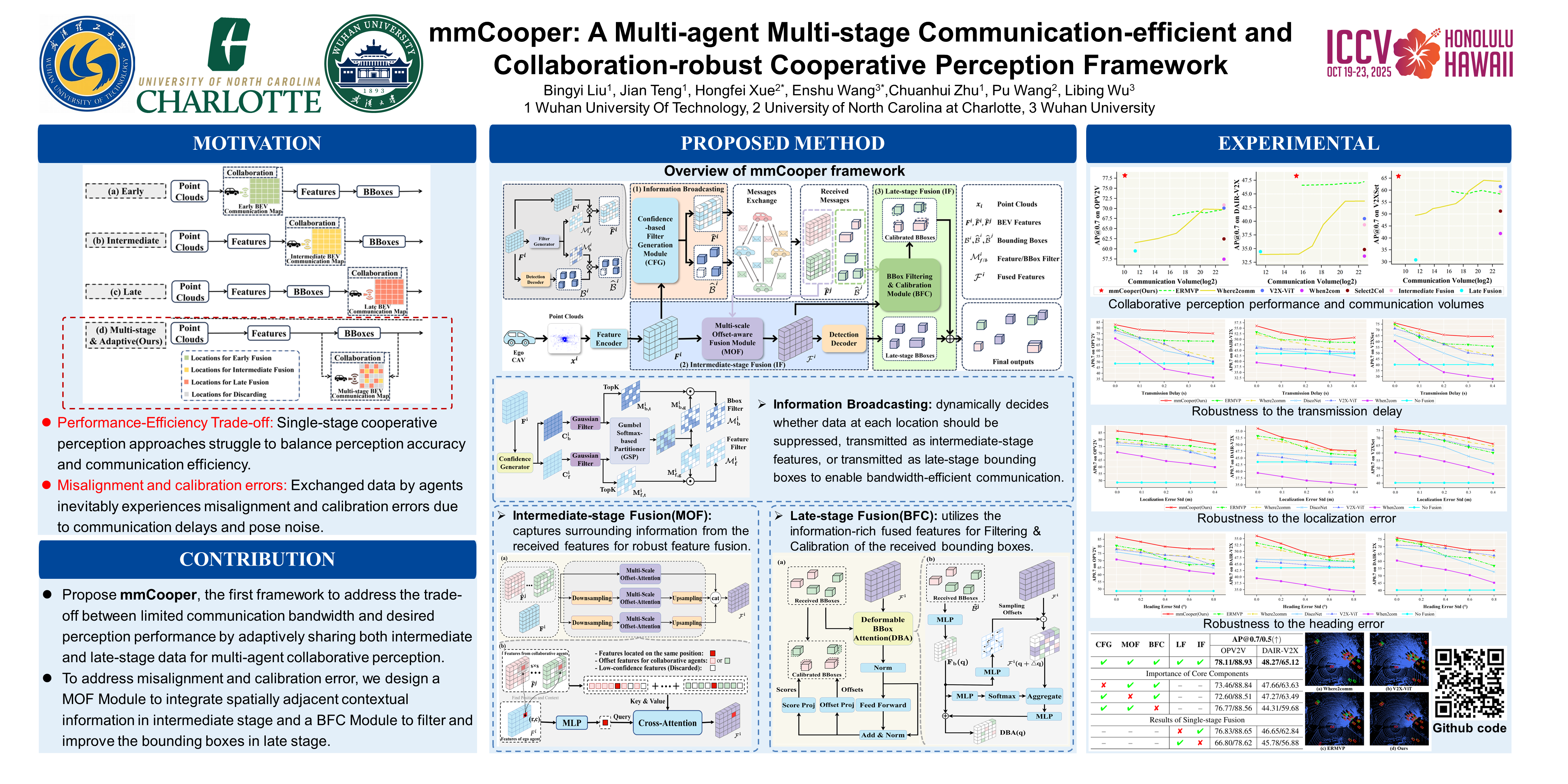 Collaborative perception significantly enhances individual vehicle perception performance through the exchange of sensory information among agents. However, real-world deployment faces challenges due to bandwidth constraints and inevitable calibration errors during information exchange. To address these issues, we propose mmCooper, a novel multi-agent, multi-stage, communication-efficient, and collaboration-robust cooperative perception framework. Our framework leverages a multi-stage collaboration strategy that dynamically and adaptively balances intermediate- and late-stage information to share among agents, enhancing perceptual performance while maintaining communication efficiency. To support robust collaboration despite potential misalignments and calibration errors, our framework prevents misleading low-confidence sensing information from transmission and refines the received detection results from collaborators to improve accuracy. The extensive evaluation results on both real-world and simulated datasets demonstrate the effectiveness of the mmCooper framework and its components.