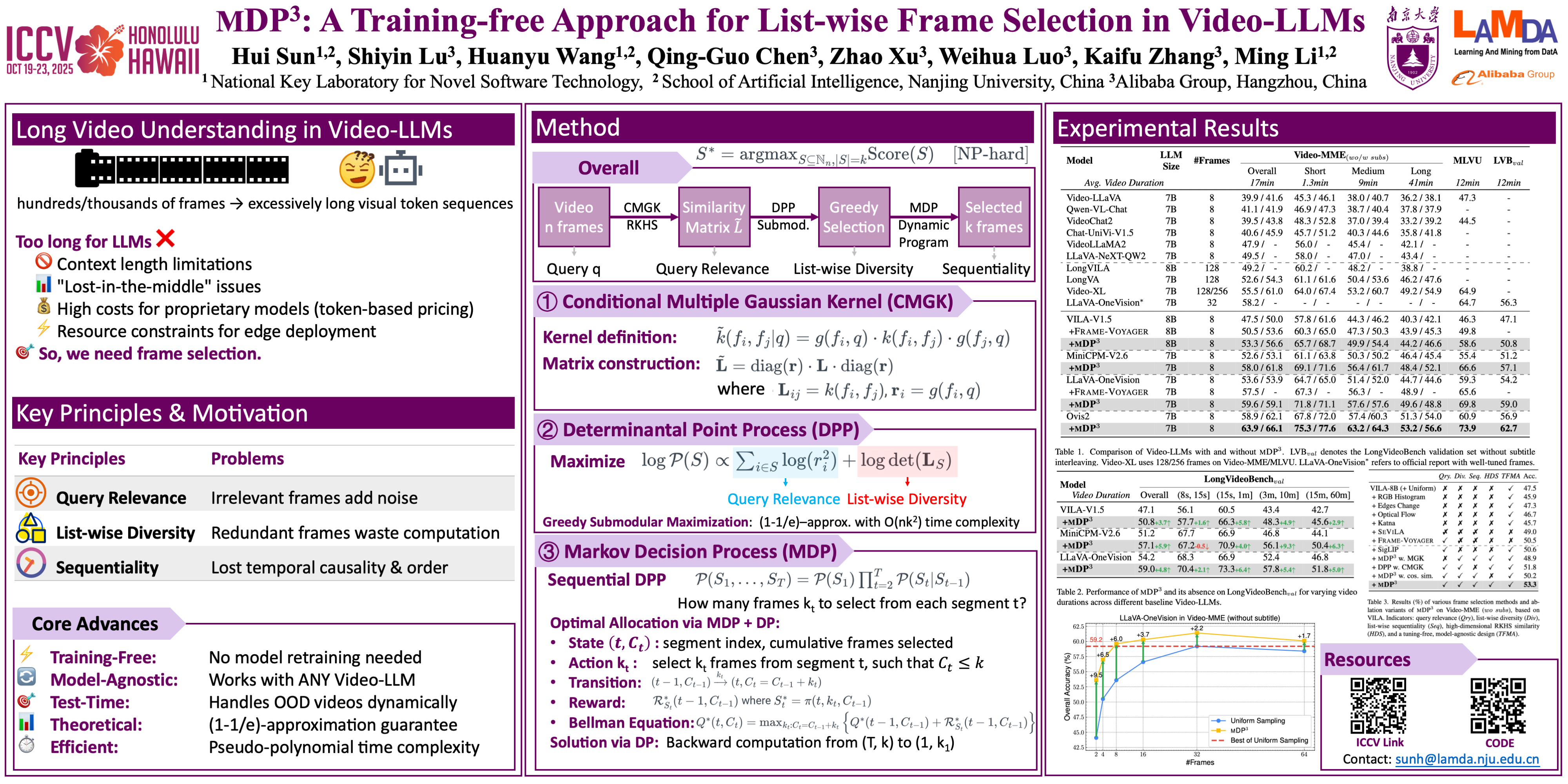 MDP3: A Training-free Approach for List-wise Frame Selection in Video-LLMs