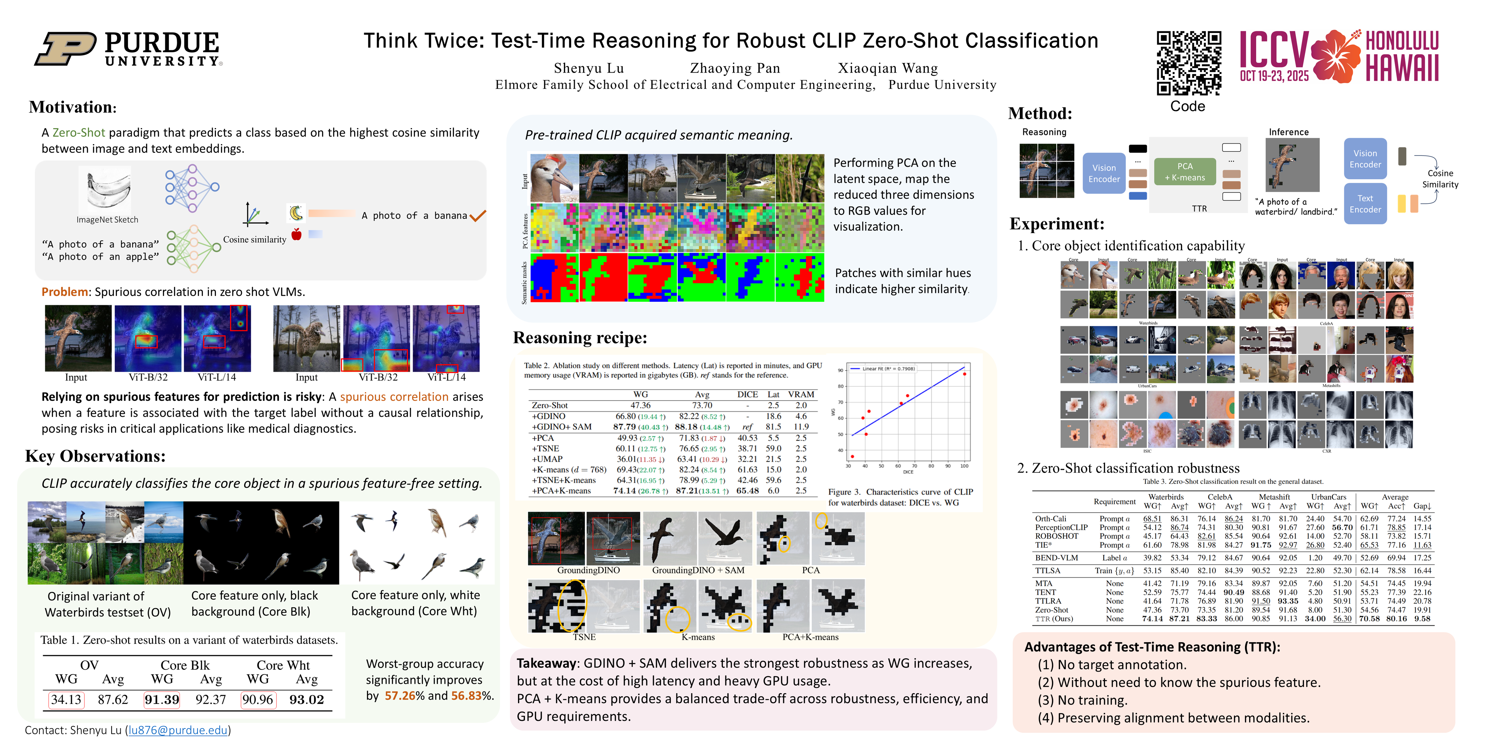 Contrastive Language-Image Pre-training (CLIP) models exhibit intriguing properties, particularly in their zero-shot classification capability. However, the reliability of CLIP zero-shot classification is severely undermined by spurious correlations. Existing efforts to enhance the robustness of zero-shot CLIP models often rely on prior knowledge or annotations of spurious correlations, limiting real-world applicability due to the unavailability of such information. Alternative methods attempt to detect distribution shift at test time but require training statistics whose access is often restricted or computationally expensive. To address the challenges brought by spurious correlation under zero-shot settings, we propose a novel test-time reasoning approach. Our method, inspired by human recognition, localizes the object and refines the classification accordingly. The inherent capacity of CLIP for semantic understanding allows us to isolate the object of interest without auxiliary models. Zero-shot classification is then performed exclusively on the localized objects, effectively mitigating the influence of spurious correlation. The proposed approach is interpretable and flexible as it requires no spurious annotations or prior knowledge, making it widely applicable. The substantial improvements across multiple benchmark datasets validated the effectiveness of our approach.
