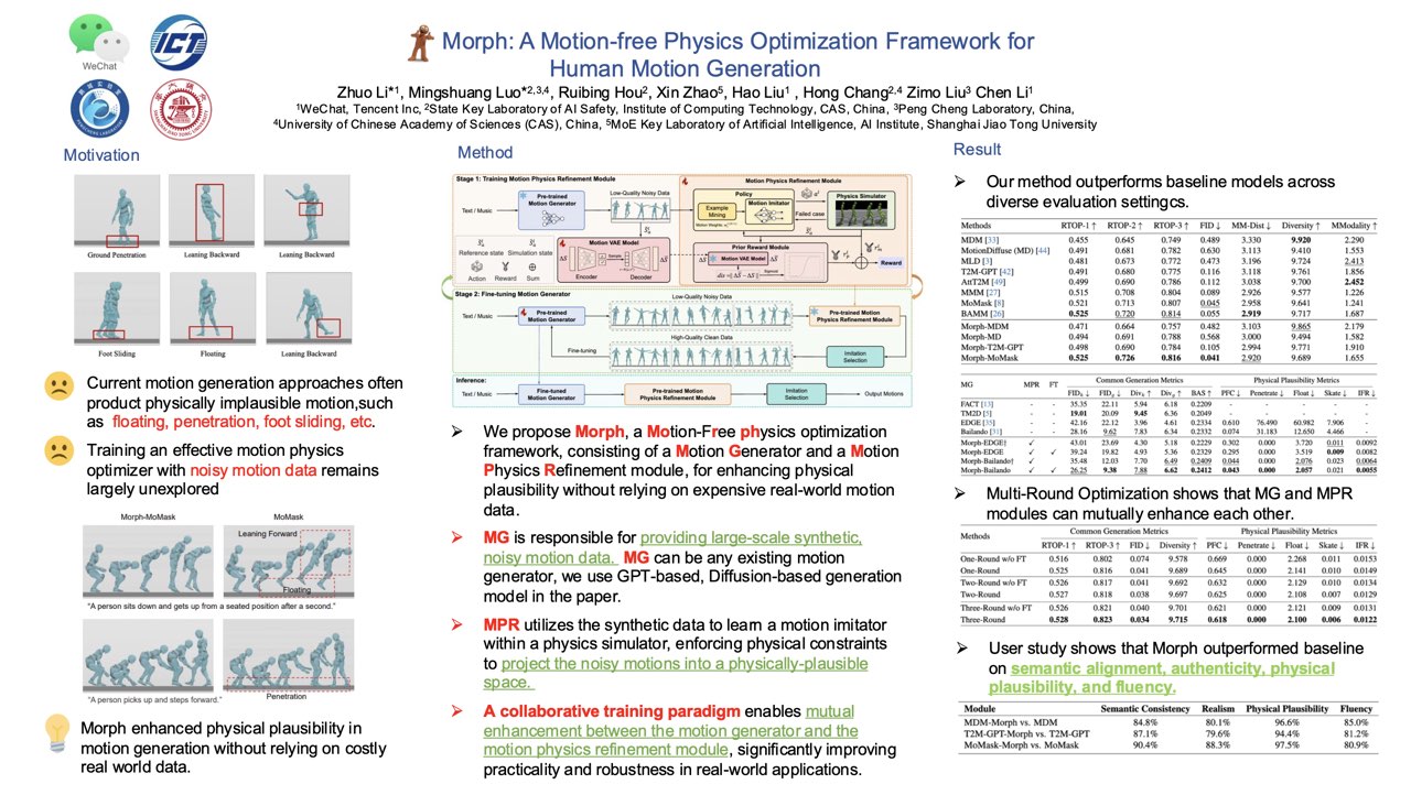 Morph: A Motion-free Physics Optimization Framework for Human Motion Generation