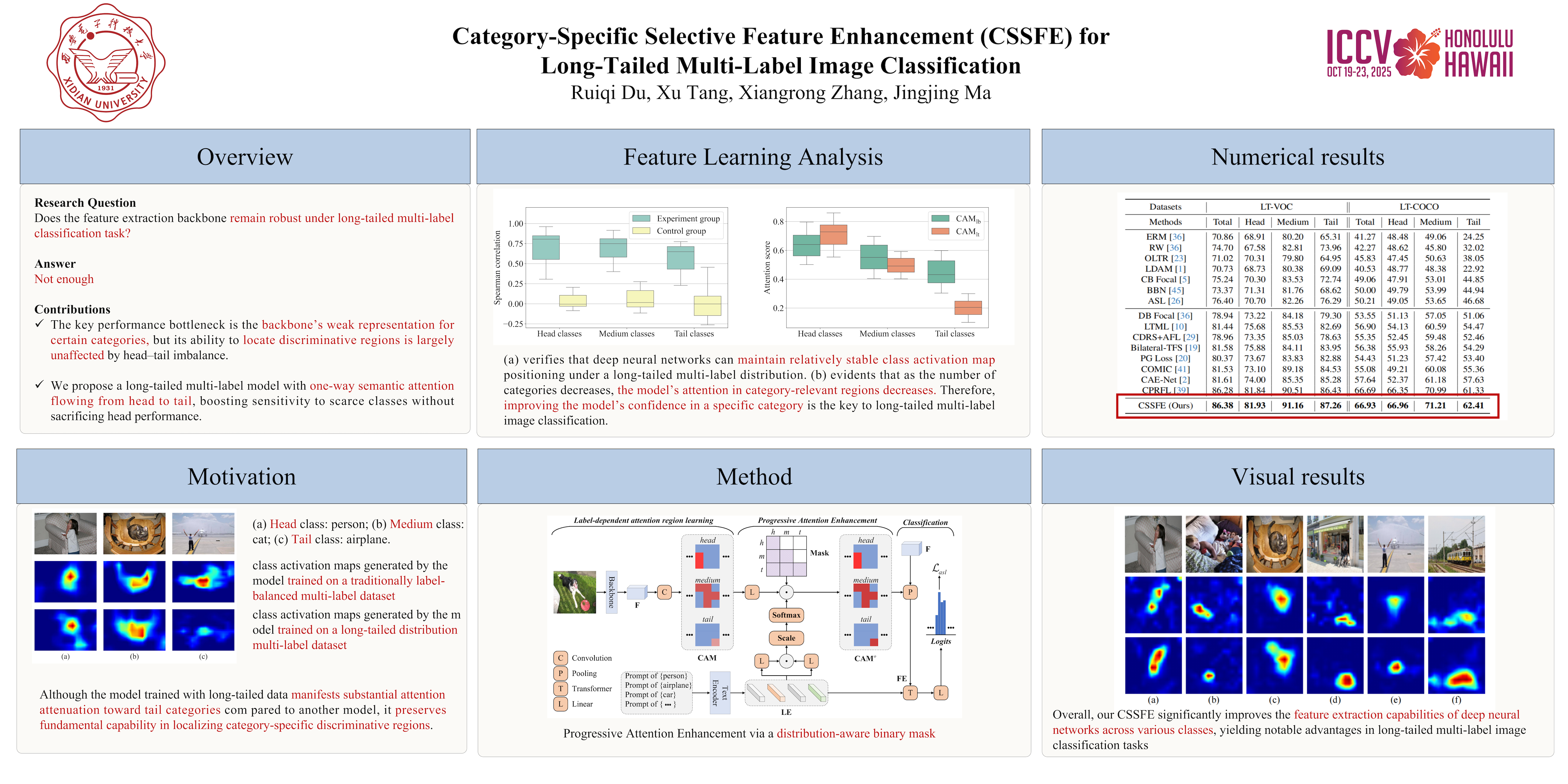 Since real-world multi-label data often exhibit significant label imbalance, long-tailed multi-label image classification has emerged as a prominent research area in computer vision. Traditionally, it is considered that deep neural networks' classifiers are vulnerable to long-tailed distributions, whereas the feature extraction backbone remains relatively robust. However, our analysis from the feature learning perspective reveals that the backbone struggles to maintain high sensitivity to sample-scarce categories but retains the ability to localize specific areas effectively. Based on this observation, we propose a new model for long-tailed multi-label image classification named category-specific selective feature enhancement (CSSFE). First, it utilizes the retained localization capability of the backbone to capture label-dependent class activation maps. Then, a progressive attention enhancement mechanism, updating from head to medium to tail categories, is introduced to address the low-confidence issue in medium and tail categories. Finally, visual features are extracted according to the optimized class activation maps and combined with semantic information to perform the classification task. Extensive experiments on two benchmark datasets highlight our findings' generalizability and the proposed CSSFE's superior performance.