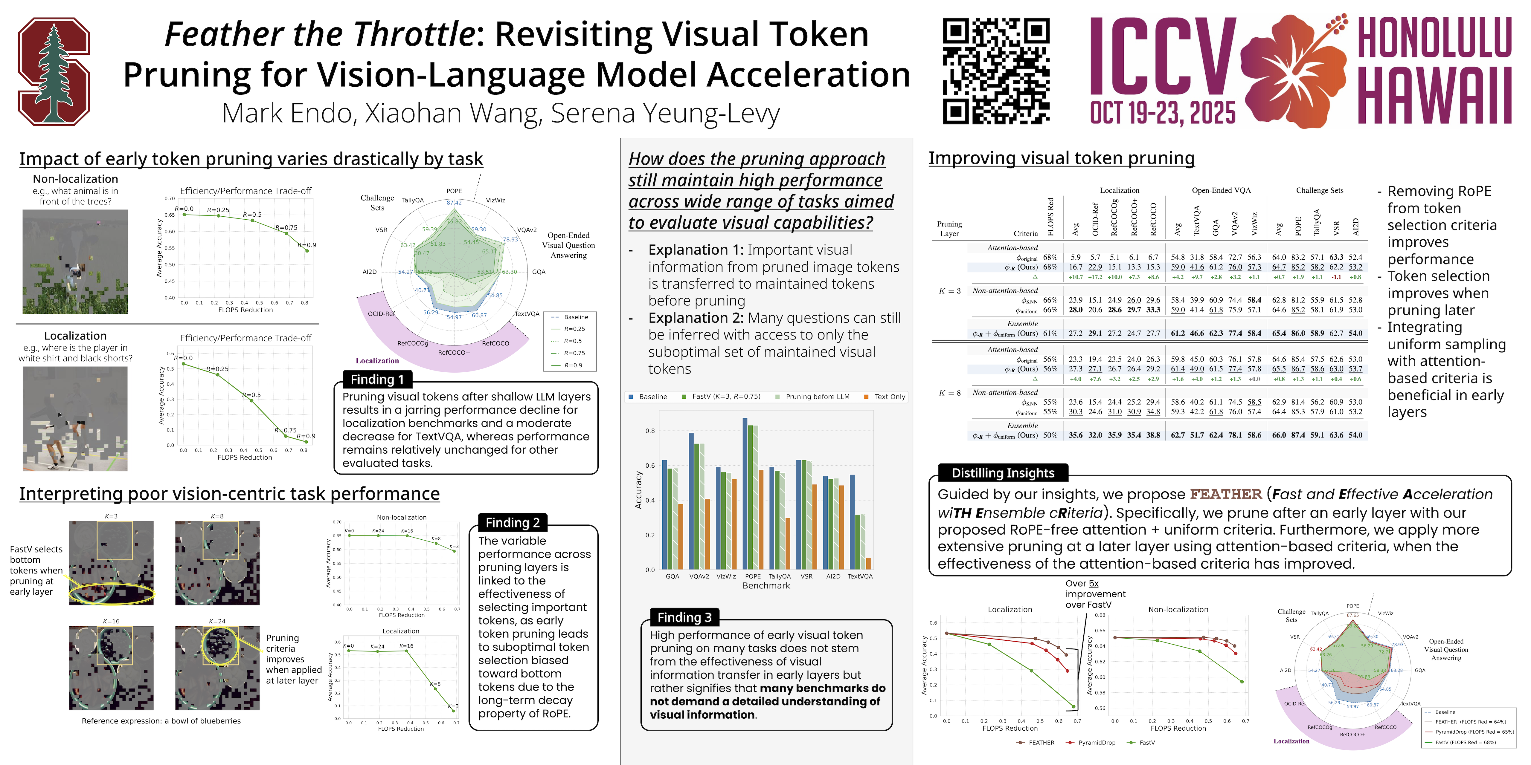 Recent works on accelerating Vision-Language Models achieve strong performance across a variety of vision-language tasks despite highly compressing visual information. In this work, we examine the popular acceleration approach of early pruning of visual tokens inside the language model. Surprisingly, we find that while strong performance is maintained across many tasks, it exhibits drastically different behavior for a subset of vision-centric tasks such as localization. Upon further investigation, we uncover a core issue with the acceleration approach where most tokens towards the top of the image are pruned away. Yet, on many benchmarks aiming to evaluate vision-centric capabilities, strong performance persists with the flawed pruning strategy, highlighting these benchmarks' limited ability to assess fine-grained visual capabilities. Based on these findings, we propose FEATHER (Fast and Effective Acceleration wiTH Ensemble cRiteria), a straightforward approach that resolves the discovered early-layer pruning issue and further enhances the preservation of relevant tokens via multistage pruning with early uniform sampling to ensure broad image coverage. With comparable computational savings, we find that FEATHER achieves more than 5x performance improvement on the vision-centric localization benchmarks compared to the original acceleration approach.