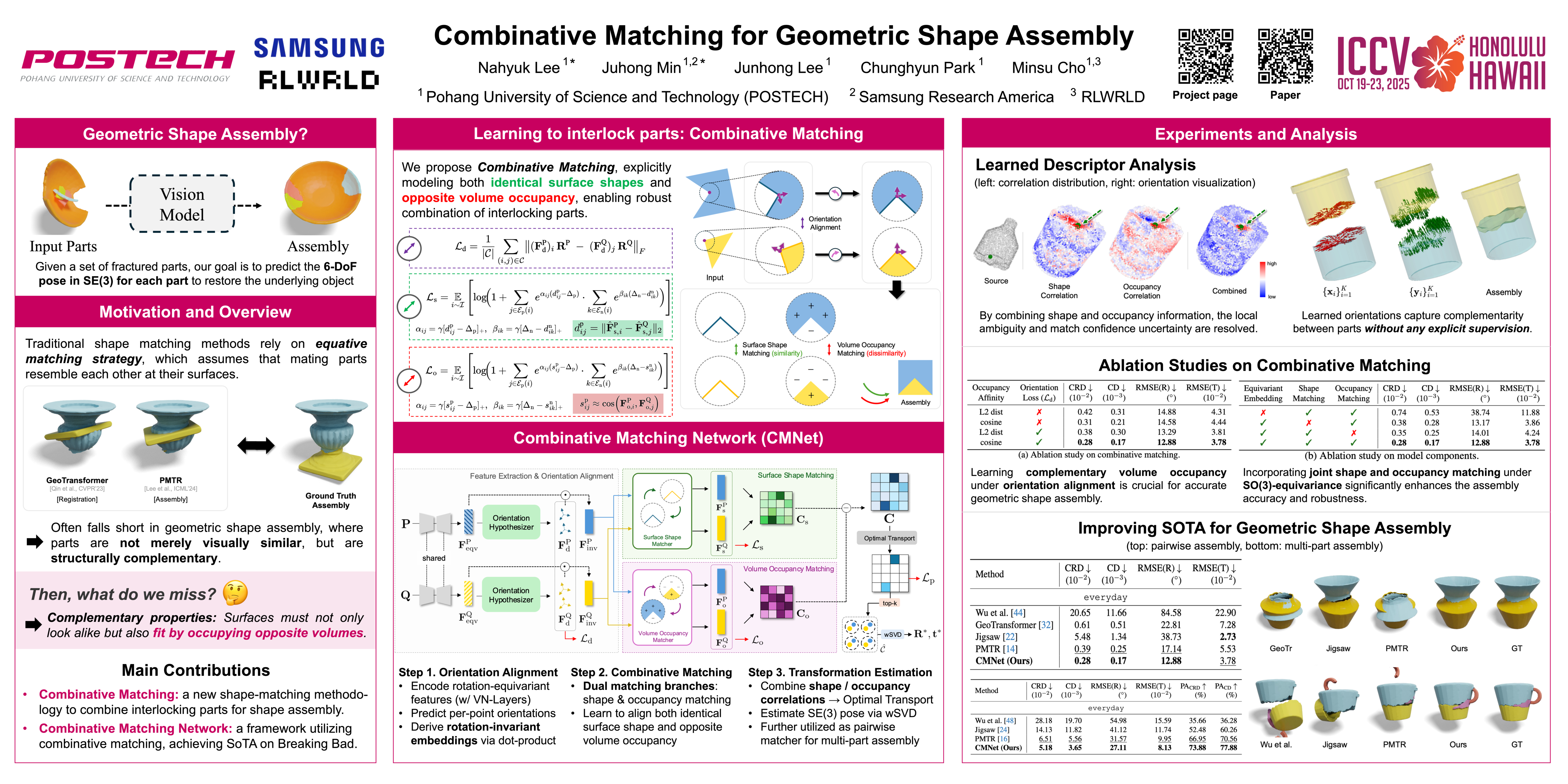 Combinative Matching for Geometric Shape Assembly