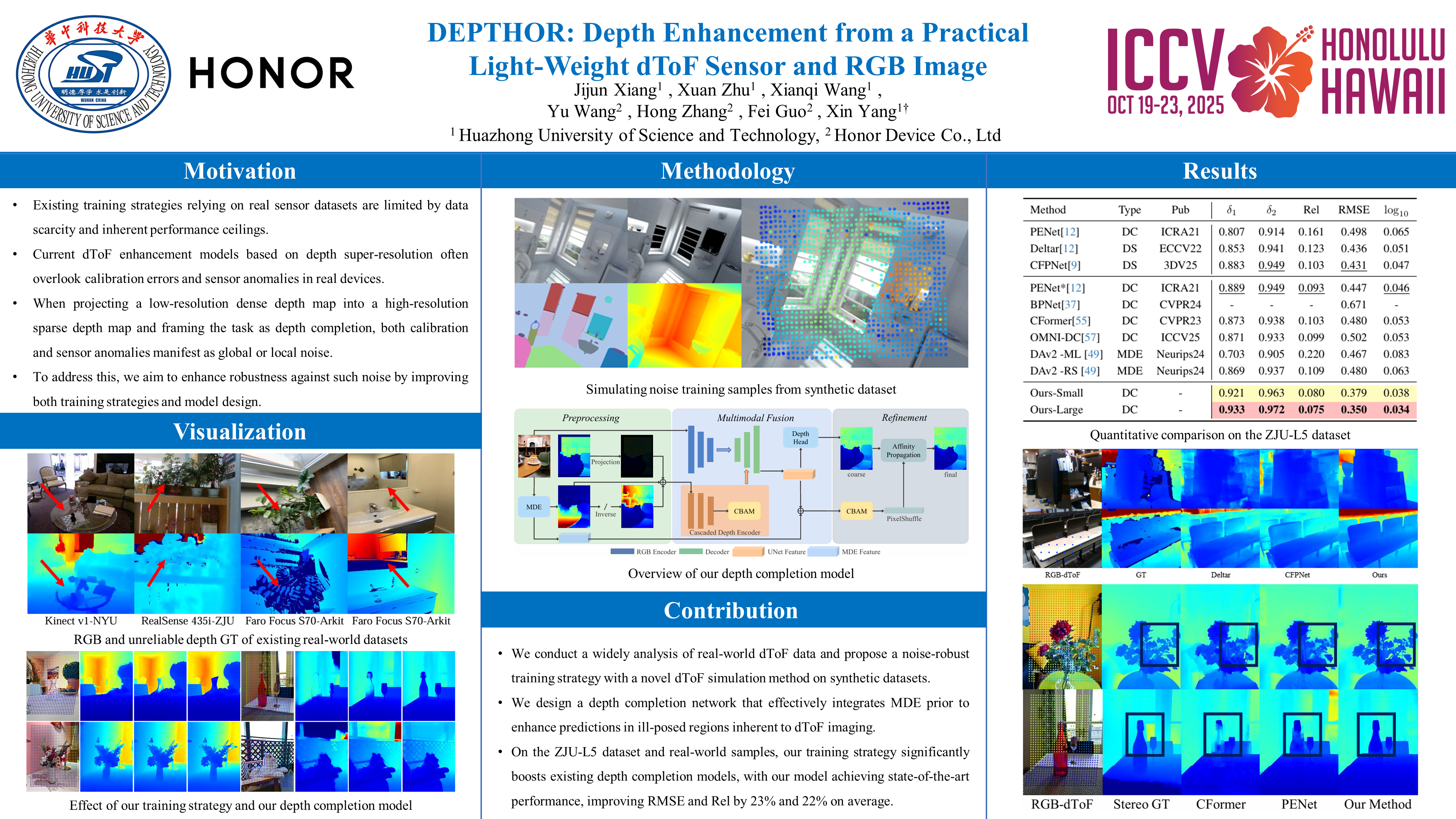 DEPTHOR: Depth Enhancement from a Practical Light-Weight dToF Sensor and RGB Image