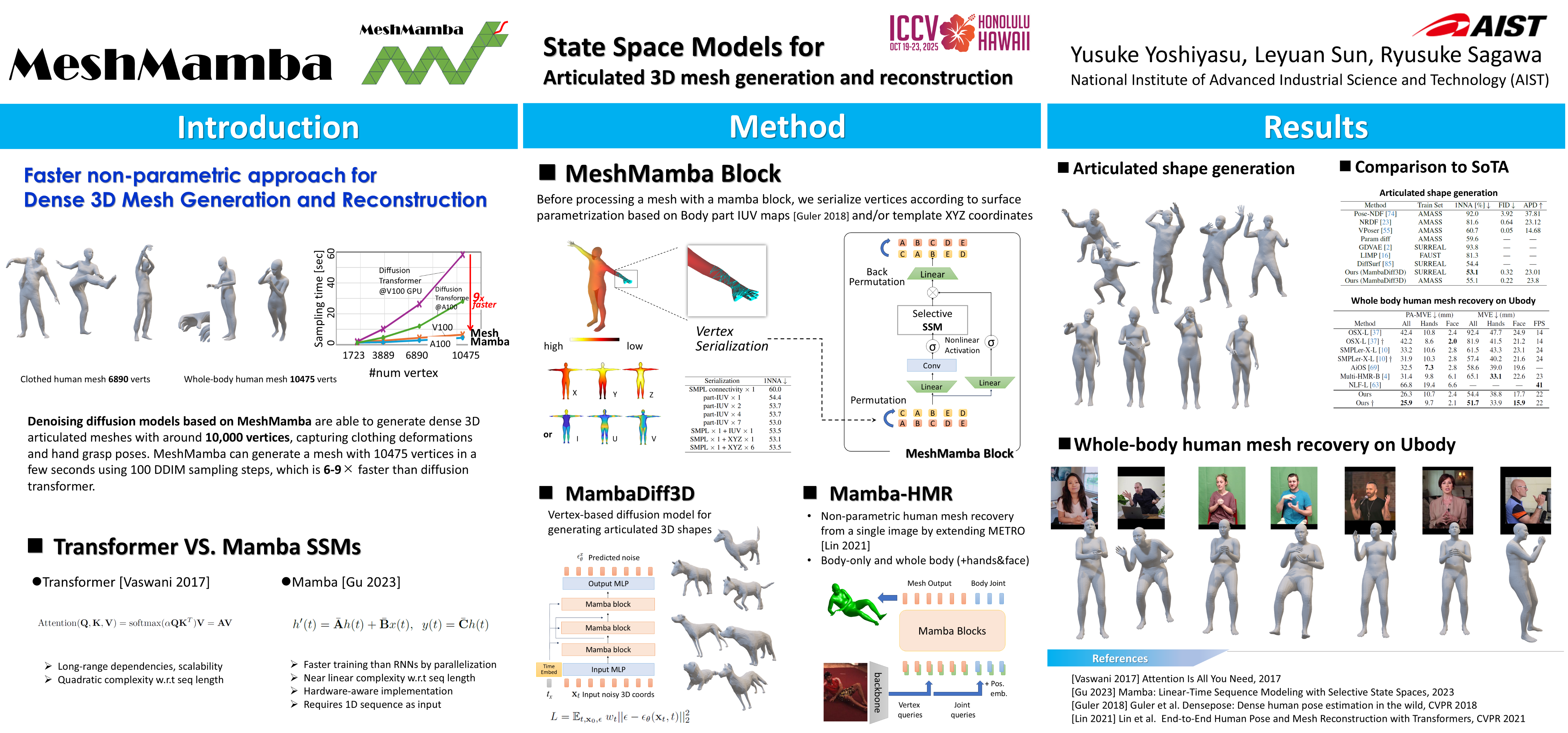 MeshMamba: State Space Models for Articulated 3D Mesh Generation and Reconstruction
