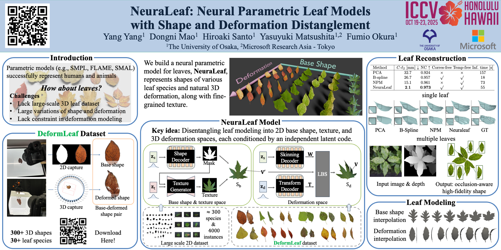 NeuraLeaf: Neural Parametric Leaf Models with Shape and Deformation Disentanglement