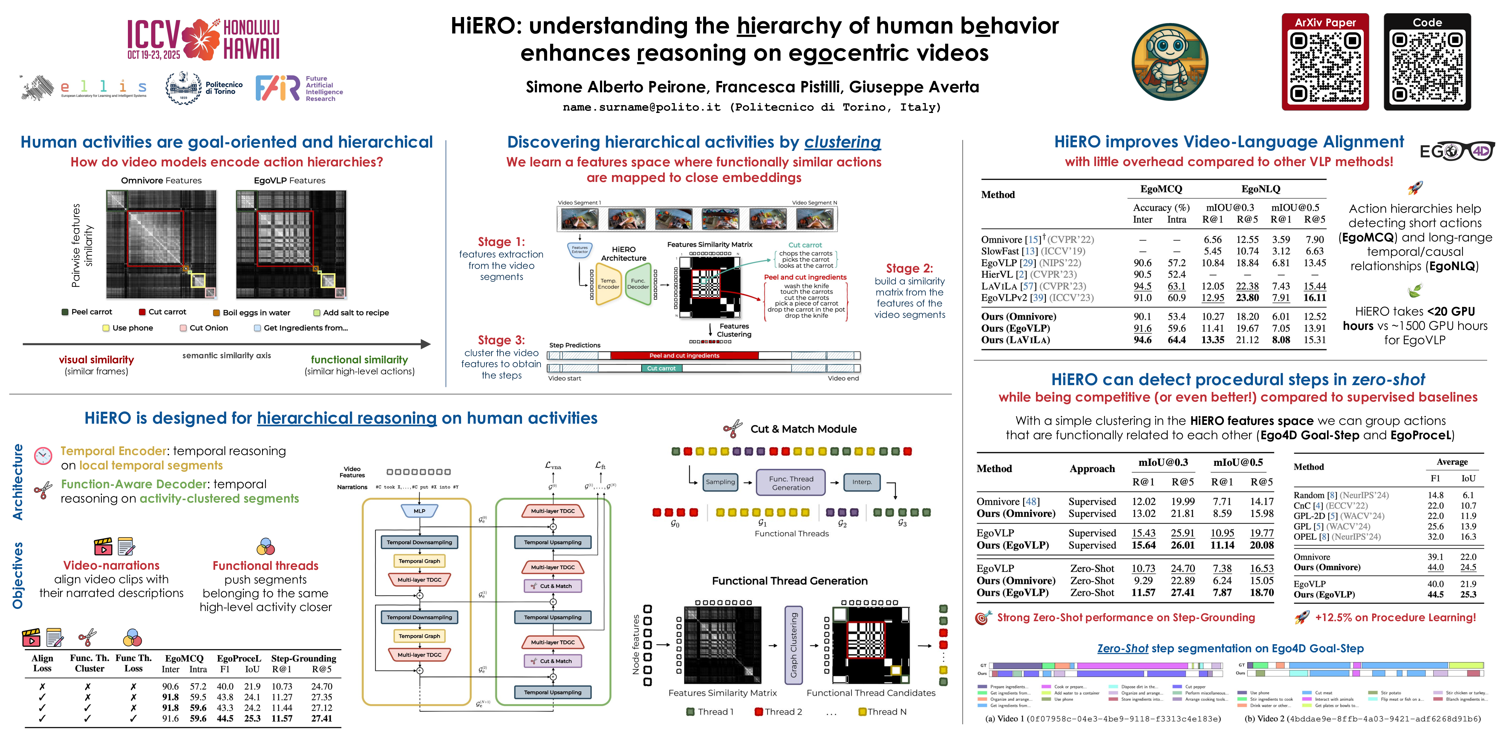 HiERO: Understanding the Hierarchy of Human Behavior Enhances Reasoning on Egocentric Videos