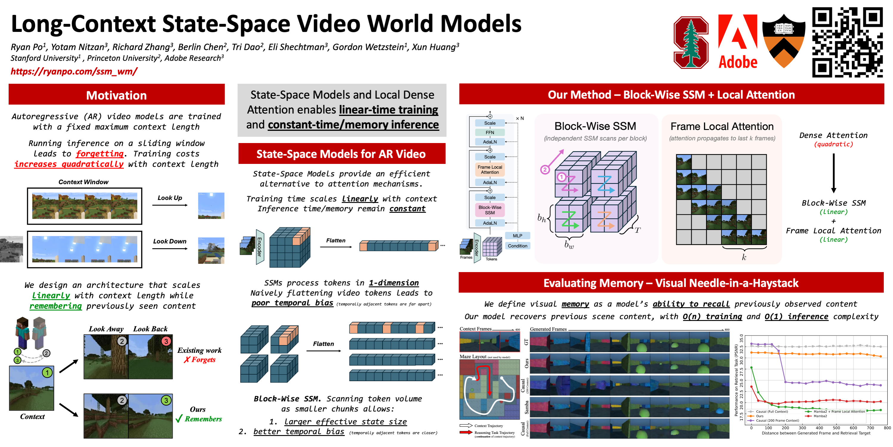 Video diffusion models have recently shown promise for world modeling through autoregressive frame prediction conditioned on actions. However, they struggle to maintain long-term memory due to the high computational cost associated with processing extended sequences in attention layers. To overcome this limitation, we propose a novel architecture leveraging state-space models (SSMs) to extend temporal memory without compromising computational efficiency. Unlike previous approaches that retrofit SSMs for non-causal vision tasks, our method fully exploits the inherent advantages of SSMs in causal sequence modeling. Central to our design is a block-wise SSM scanning scheme, which strategically trades off spatial consistency for extended temporal memory, combined with dense local attention to ensure coherence between consecutive frames. We evaluate the long-term memory capabilities of our model through spatial retrieval and reasoning tasks over extended horizons. Experiments on Memory Maze and Minecraft datasets demonstrate that our approach surpasses baselines in preserving long-range memory, while maintaining practical inference speeds suitable for interactive applications.