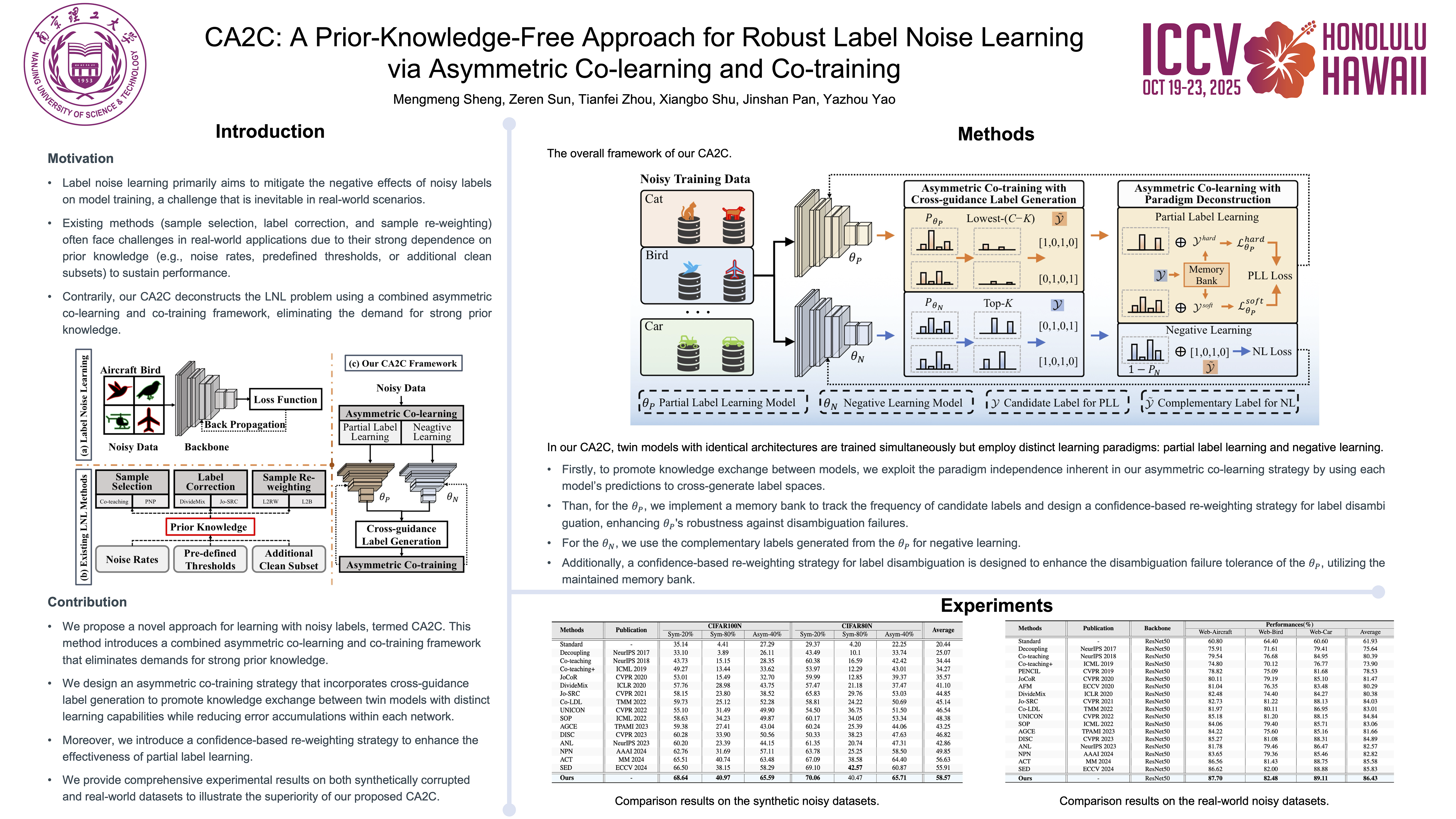 CA2C: A Prior-Knowledge-Free Approach for Robust Label Noise Learning via Asymmetric Co-learning and Co-training
