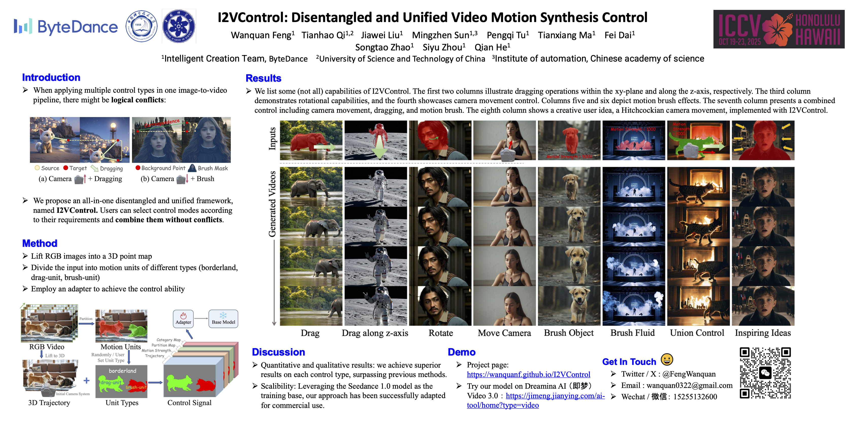 Motion controllability is crucial in video synthesis. However, most previous methods are limited to single control types, and combining them often results in logical conflicts. In this paper, we propose a disentangled and unified framework, namely I2VControl, to overcome the logical conflicts. We rethink camera control, object dragging, and motion brush, reformulating all tasks into a consistent representation based on point trajectories, each managed by a dedicated formulation. Accordingly, we propose a spatial partitioning strategy, where each unit is assigned to a concomitant control category, enabling diverse control types to be dynamically orchestrated within a single synthesis pipeline without conflicts. Furthermore, we design an adapter structure that functions as a plug-in for pre-trained models and is agnostic to specific model architectures. We conduct extensive experiments, achieving excellent performance on various control tasks, and our method further facilitates user-driven creative combinations, enhancing innovation and creativity. Please see the video results in our anonymous github repository: https://github.com/iccv2025sub592/sub592.