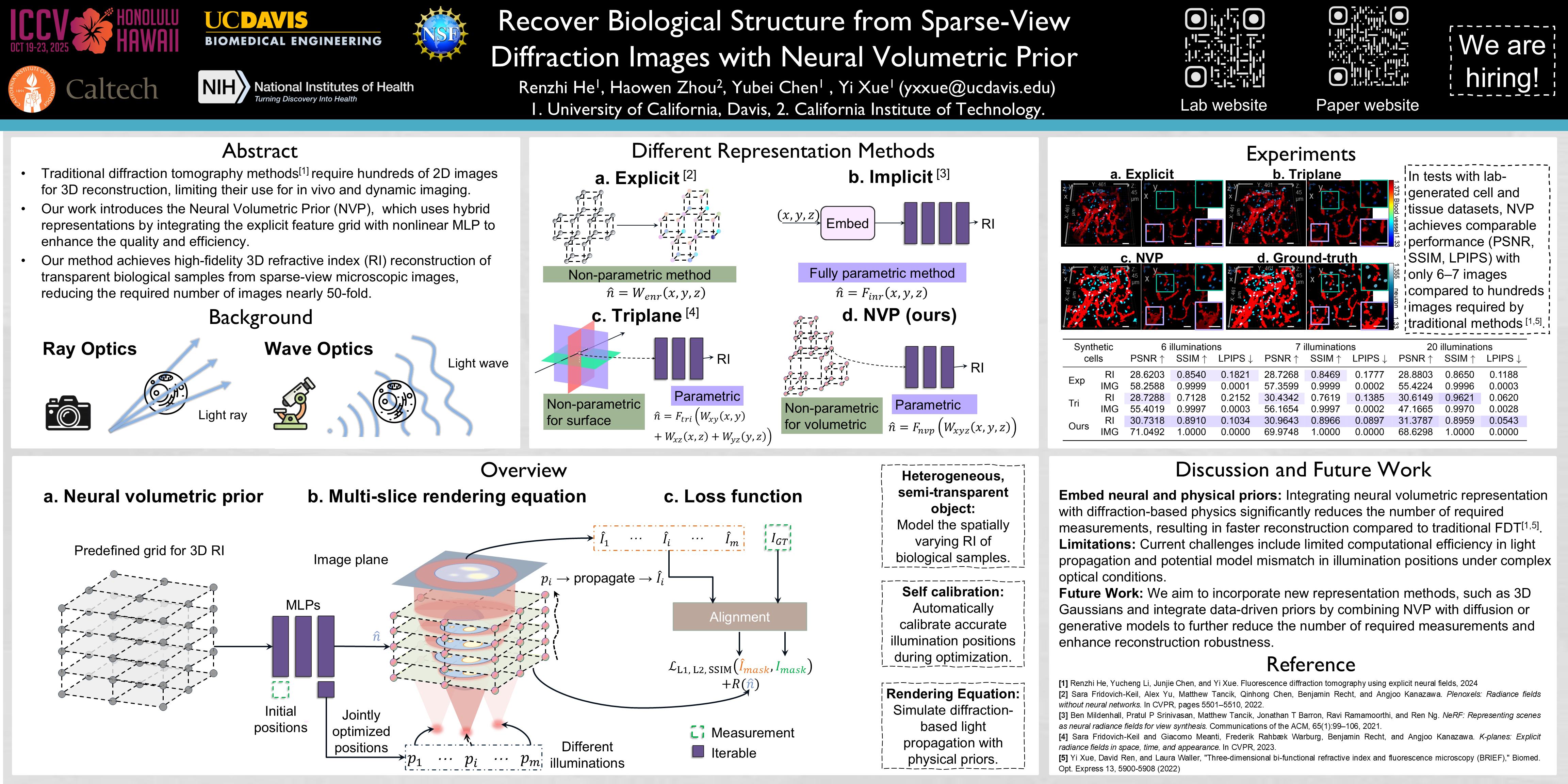 Recover Biological Structure from Sparse-View Diffraction Images with Neural Volumetric Prior