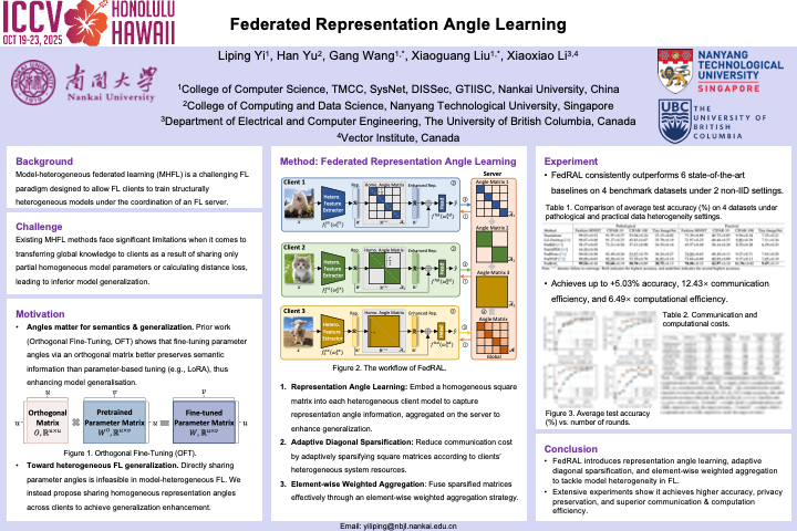 Model-heterogeneous federated learning (MHFL) is a challenging FL paradigm designed to allow FL clients to train structurally heterogeneous models under the coordination of an FL server. Existing MHFL methods face significant limitations when it comes to transferring global knowledge to clients as a result of sharing only partial homogeneous model parameters or calculating distance loss, leading to inferior model generalization. To bridge this gap, we propose a novel model-heterogeneous Federated learning method with Representation Angle Learning (FedRAL). It consists of three innovative designs: (1) We first introduce representation angle learning into MHFL. Specifically, we embed a homogeneous square matrix into the local heterogeneous model of each client, which learns the angle information of local representations. These homogeneous representation angle square matrices are aggregated on the server to fuse representation angle knowledge shared by clients for enhancing the generalization of local representations. (2) As different clients might have heterogeneous system resources, we propose an adaptive diagonal sparsification strategy to reduce the numbers of the parameters of representation angle square matrices uploaded to the server, to improve FL communication efficiency. (3) To enable the effective fusion of sparsified homogeneous local representation angle square matrices, we design an element-wise weighted aggregation approach. Experiments on 4 benchmark datasets under 2 types of non-IID divisions over 6 state-of-the-art baselines demonstrate that FedRAL achieves the best performance. It improves test accuracy, communication efficiency and computational efficiency by up to 5.03%, 12.43× and 6.49×, respectively.