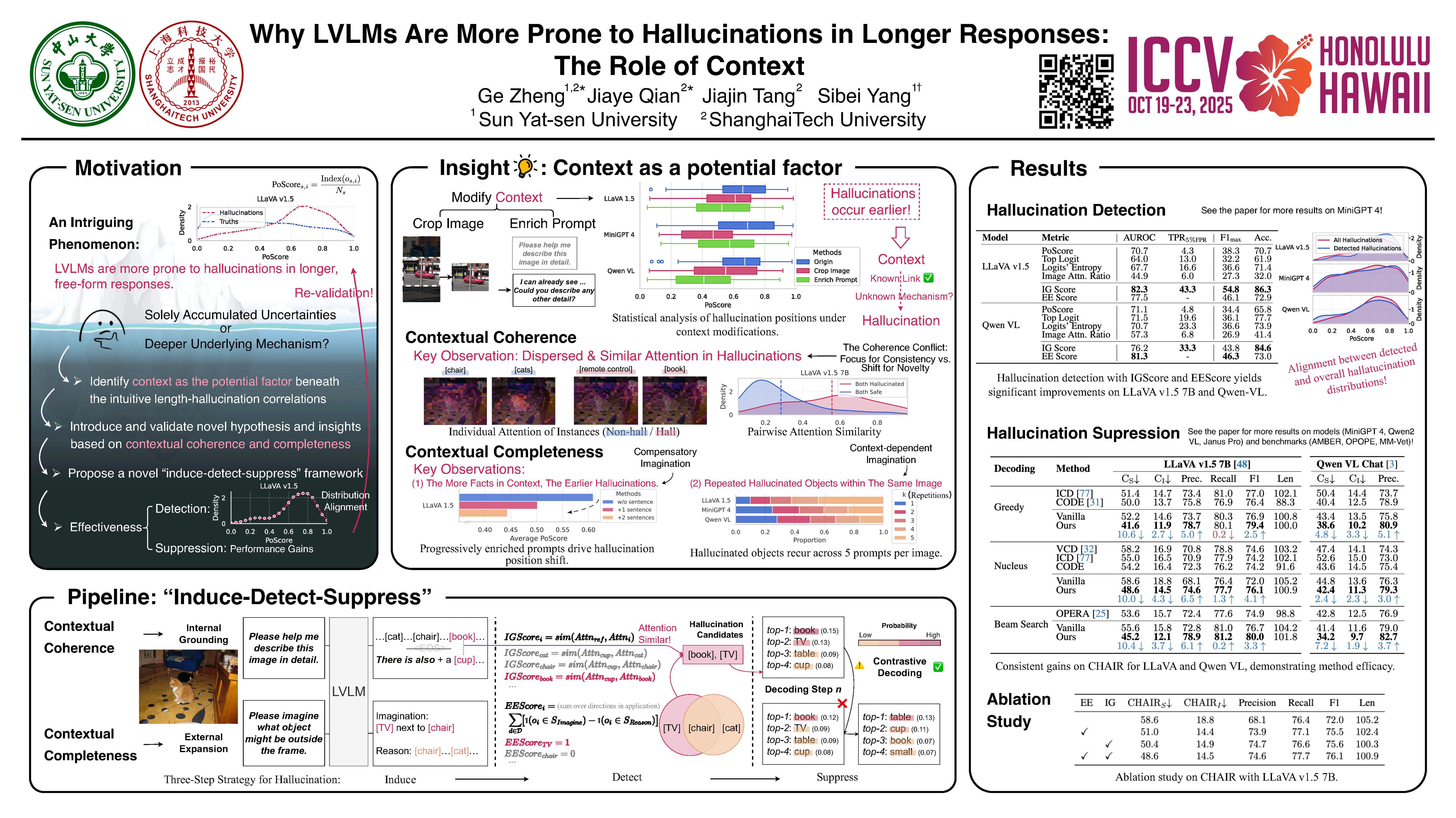 Large Vision-Language Models (LVLMs) have made significant progress in recent years but are also prone to hallucination issues. They exhibit more hallucinations in longer, free-form responses, often attributed to accumulated uncertainties. In this paper, we ask: Does increased hallucination result solely from length-induced errors, or is there a deeper underlying mechanism? After a series of preliminary experiments and findings, we suggest that the risk of hallucinations is not caused by length itself but by the increased reliance on context for coherence and completeness in longer responses. Building on these insights, we propose a novel ``induce-detect-suppress" framework that actively induces hallucinations through deliberately designed contexts, leverages induced instances for early detection of high-risk cases, and ultimately suppresses potential hallucinations during actual decoding. Our approach achieves consistent, significant improvements across all benchmarks, demonstrating its efficacy. The strong detection and improved hallucination mitigation not only validate our framework but, more importantly, re-validate our hypothesis on context. Rather than solely pursuing performance gains, this study aims to provide new insights and serves as a first step toward a deeper exploration of hallucinations in LVLMs' longer responses. Code will be released.