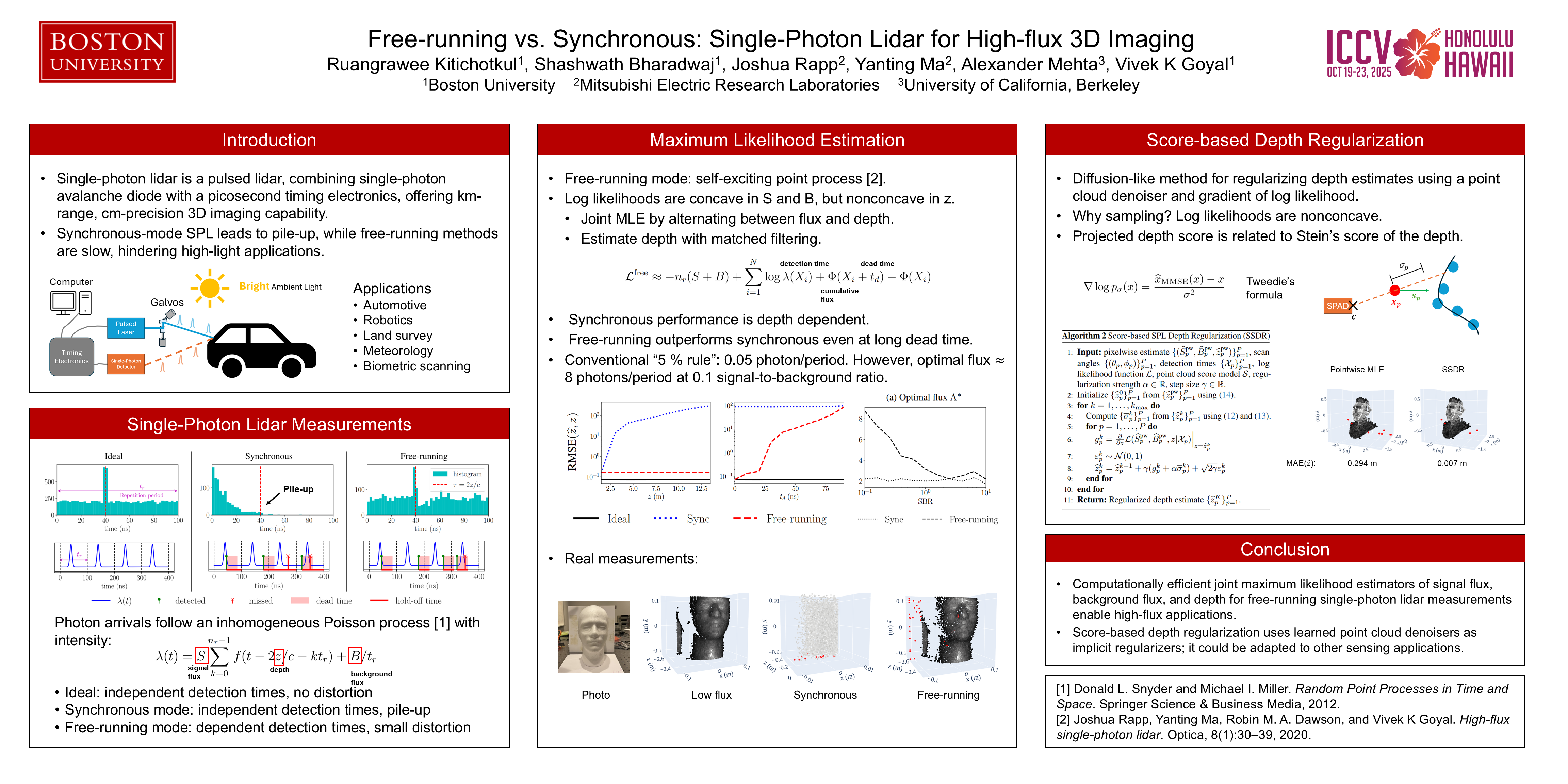 Conventional wisdom suggests that single-photon lidar (SPL) should operate in low-light conditions to minimize dead-time effects.Many methods have been developed to mitigate these effects in synchronous SPL systems. However, solutions for free-running SPL remain limited despite the advantage of reduced histogram distortion from dead times.To improve the accuracy of free-running SPL, we propose a computationally efficient joint maximum likelihood estimator of the signal flux, the background flux, and the depth, along with a complementary regularization framework that incorporates a learned point cloud score model as a prior.Simulations and experiments demonstrate that free-running SPL yields lower estimation errors than its synchronous counterpart under identical conditions, with our regularization further improving accuracy.