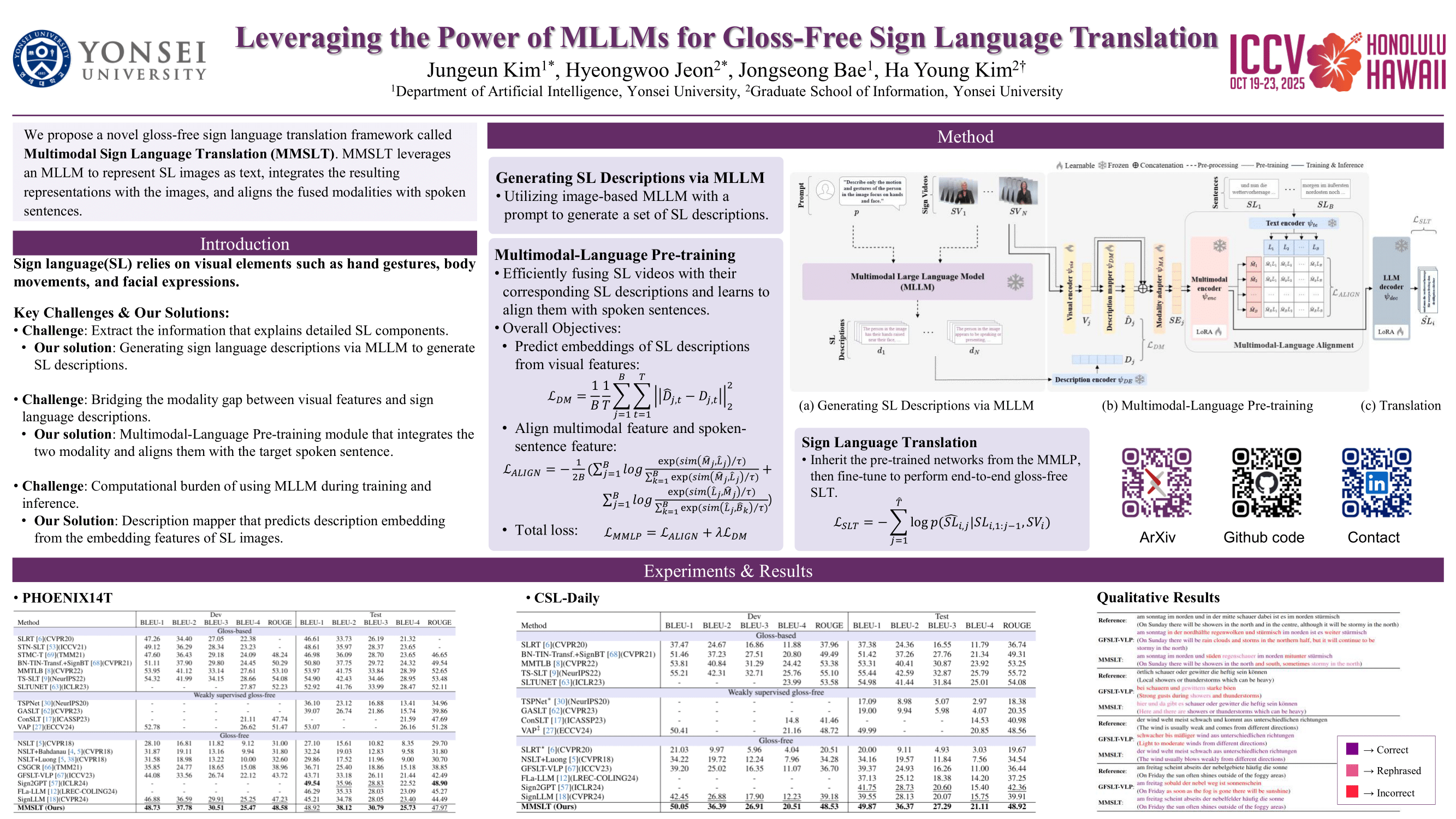Sign language translation (SLT) is a challenging task that involves translating sign language images into spoken language. For SLT models to perform this task successfully, they must bridge the modality gap and identify subtle variations in sign language components to understand their meanings accurately. To address these challenges, we propose a novel gloss-free SLT framework called Multimodal Sign Language Translation (MMSLT), which leverages the representational capabilities of off-the-shelf multimodal large language models (MLLMs). Specifically, we use MLLMs to generate detailed textual descriptions of sign language components. Then, through our proposed multimodal-language pre-training module, we integrate these description features with sign video features to align them within the spoken sentence space. Our approach achieves state-of-the-art performance on benchmark datasets PHOENIX14T and CSL-Daily, highlighting the potential of MLLMs to be utilized effectively in SLT.