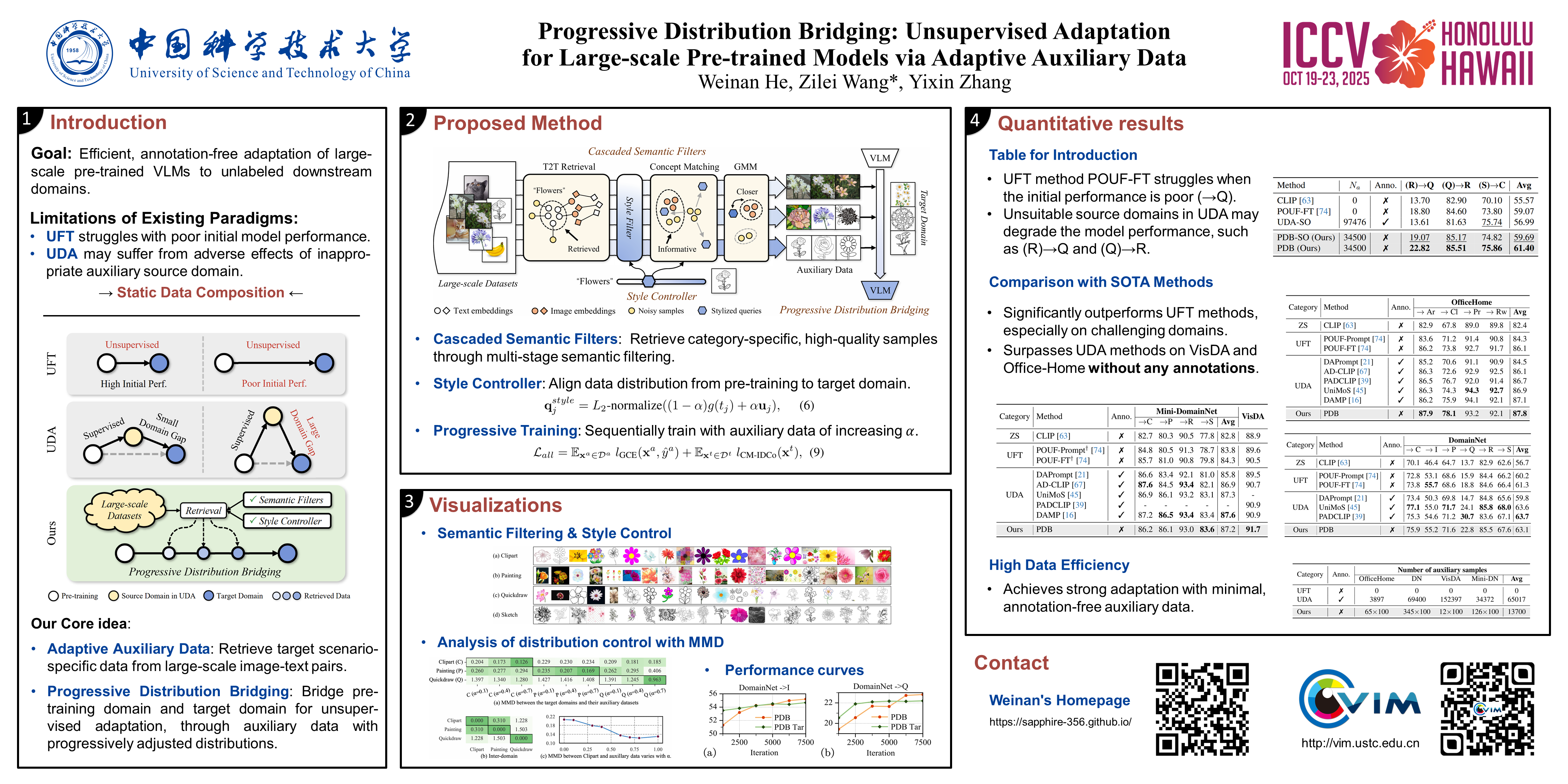 Progressive Distribution Bridging: Unsupervised Adaptation for Large-scale Pre-trained Models via Adaptive Auxiliary Data