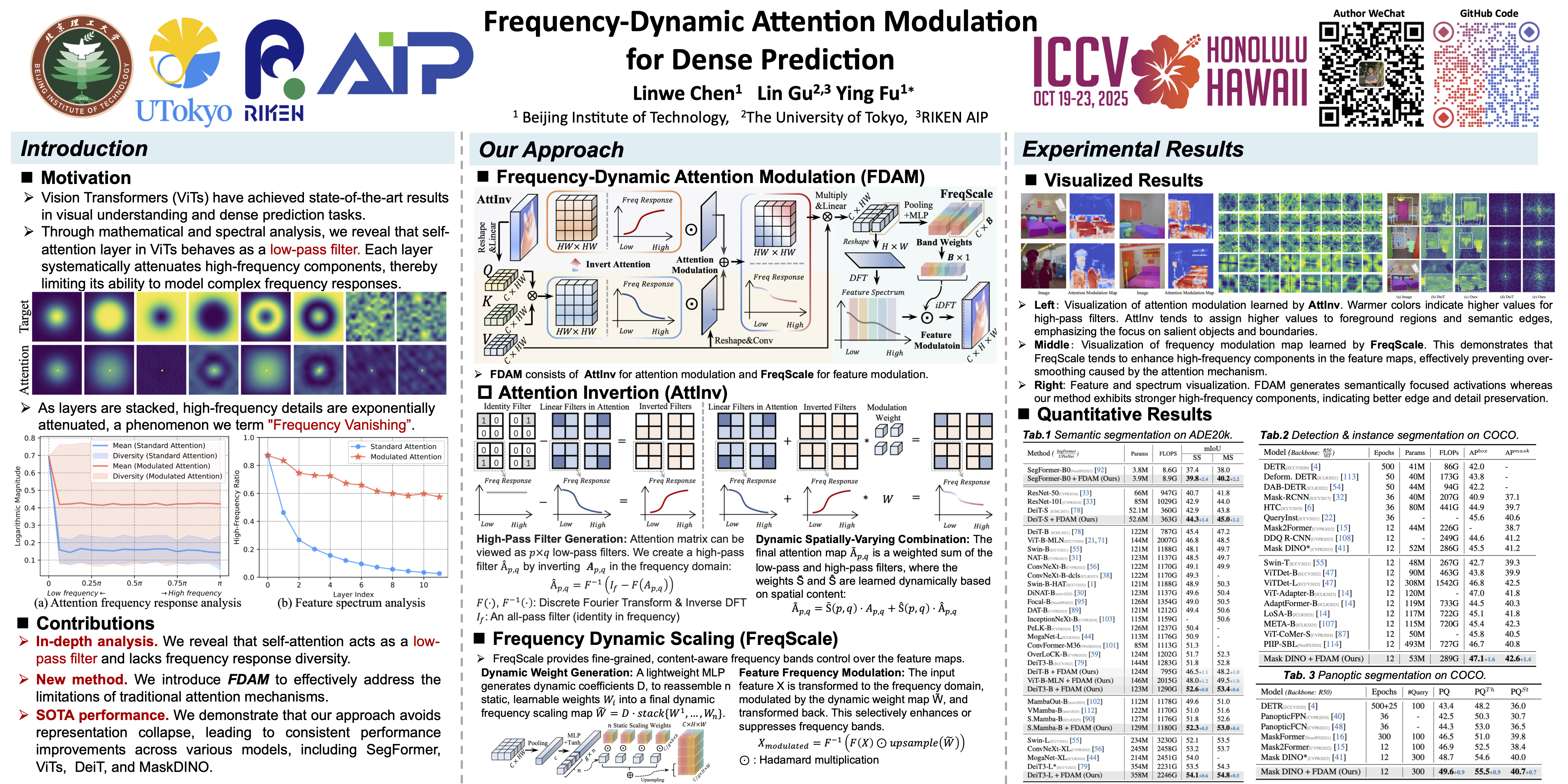 Vision Transformers (ViTs) have significantly advanced computer vision, demonstrating strong performance across various tasks. However, the attention mechanism in ViTs makes each layer function as a low-pass filter, and the stacked-layer architecture in existing transformers suffers from frequency vanishing. This leads to the loss of critical details and textures.We propose a novel, circuit-theory-inspired strategy called Frequency-Dynamic Attention Modulation (FDAM), which can be easily plugged into ViTs. FDAM directly modulates the overall frequency response of ViTs and consists of two techniques: Attention Inversion (AttInv) and Frequency Dynamic Scaling (FreqScale).Since circuit theory uses low-pass filters as fundamental elements, we introduce AttInv, a method that generates complementary high-pass filtering by inverting the low-pass filter in the attention matrix, and dynamically combining the two. We further design FreqScale to weight different frequency components for fine-grained adjustments to the target response function.Through feature similarity analysis and effective rank evaluation, we demonstrate that our approach avoids representation collapse, leading to consistent performance improvements across various models, including SegFormer, DeiT, and MaskDINO. These improvements are evident in tasks such as semantic segmentation, object detection, and instance segmentation. Additionally, we apply our method to remote sensing detection, achieving state-of-the-art results in single-scale settings.The code will be publicly available upon acceptance.