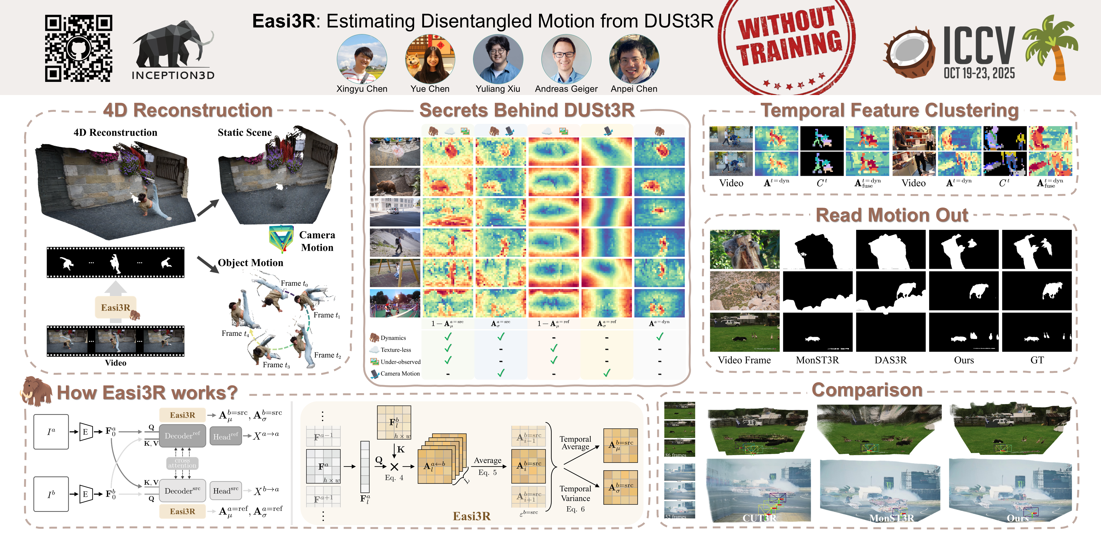 Easi3R: Estimating Disentangled Motion from DUSt3R Without Training