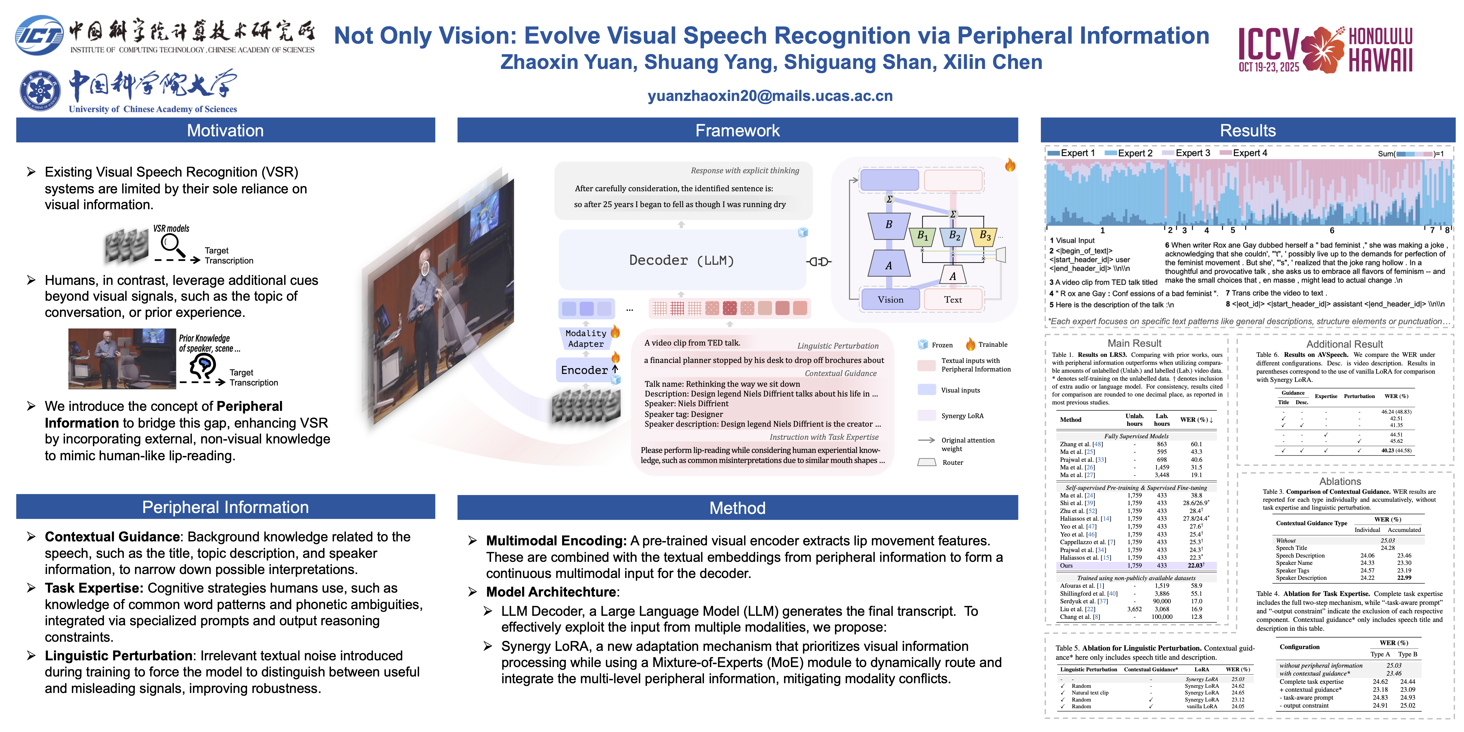 Visual Speech Recognition (VSR) aims to infer spoken content by analyzing the speaker’s facial dynamics. While this technology has shown promise, a question naturally arises: Is it sufficient to rely solely on such visual information in complex real-world scenarios?Humans, on the other hand, excel at lip-reading by leveraging information beyond lip movements, such as speech-related background and prior knowledge about the task. Despite this well-recognized human capability, existing approaches have not explored incorporating such \textbf{Peripheral Information} into automatic frameworks.We categorize peripheral information into a hierarchical structure based on its relevance to the spoken content: (1) Content Anchors (e.g., speech topic or description), (2) Task Expertise (task-related background, e.g., human prior lip-reading experiences), and (3) Linguistic Perturbation (irrelevant information that VSR systems should process alongside meaningful signals).To unlock the valuable clues embedded in peripheral information, we propose a novel multi-modal framework that utilizes a large language model (LLM) to decode spoken content while seamlessly integrating peripheral information.Center to our framework is a new adaptation method, Synergy LoRA, which enables a coordinated adaptation of visual and textual inputs.Visual features are processed with a independent module while guided by semantic cue from peripheral information by a MoE textual adaptation module. It preserves the fine-grained spatiotemporal details of the visual modality and incorporates peripheral information to enhance recognition.On the widely-used LRS3 dataset, with readily available peripheral information, our model achieves a Word Error Rate (WER) of 22.0\%, surpassing recent approaches.Further experiments on the challenging AVSpeech dataset also show promising results in handling complex real-world scenarios.