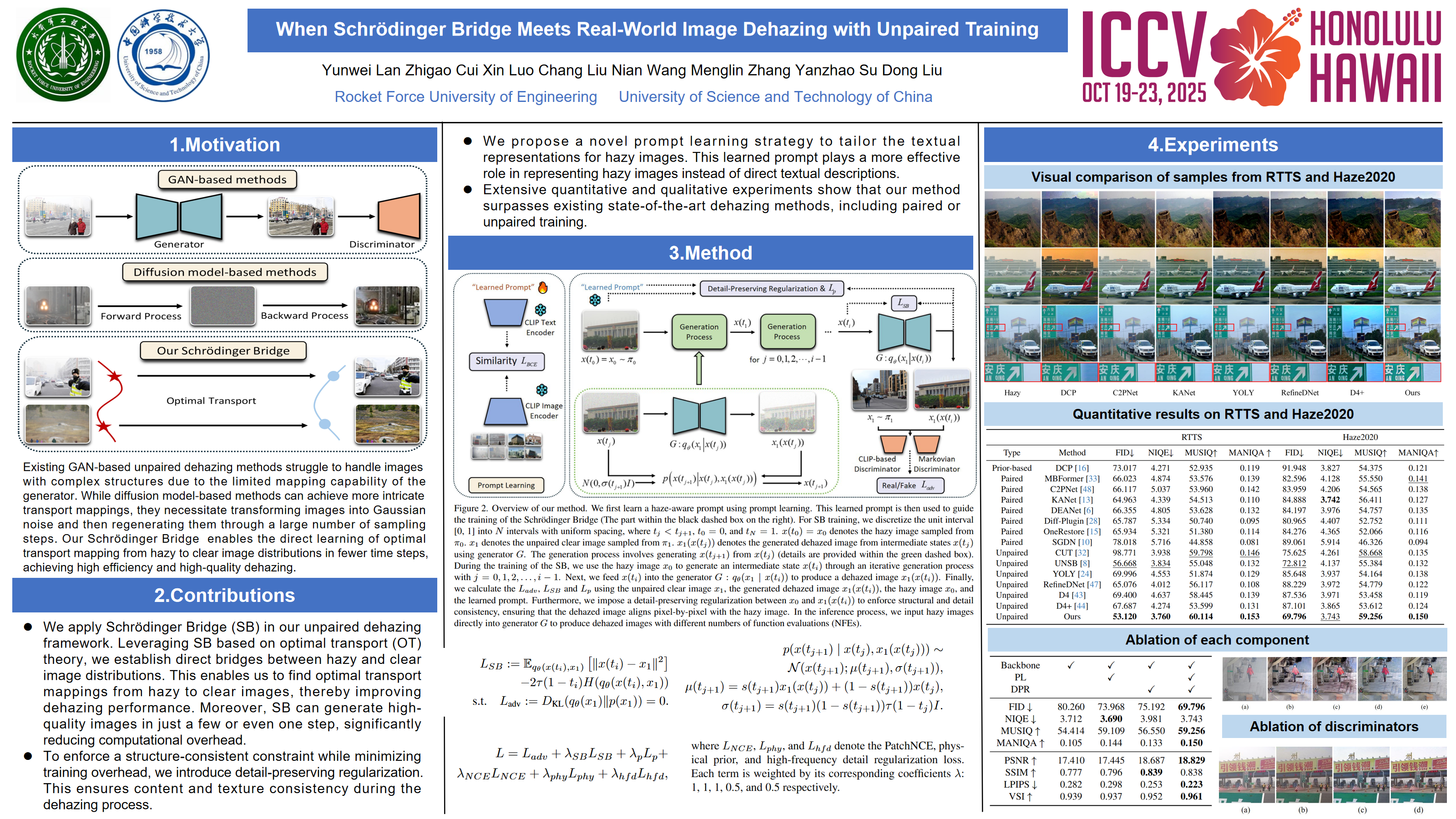Recent advancements in unpaired dehazing, particularly those using GANs, show promising performance in processing real-world hazy images. However, these methods tend to face limitations due to the generator's limited transport mapping capability, which hinders the full exploitation of their effectiveness in unpaired training paradigms. To address these challenges, we propose DehazeSB, a novel unpaired dehazing framework based on the Schrödinger Bridge. By leveraging optimal transport (OT) theory, DehazeSB directly bridges the distributions between hazy and clear images. This enables optimal transport mappings from hazy to clear images in fewer steps, thereby generating high-quality dehazed results. To ensure the consistency of structural information and localized details in the restored images, we introduce detail-preserving regularization, which enforces pixel-level alignment between hazy inputs and dehazed outputs. Furthermore, we propose a novel prompt learning to leverage pre-trained CLIP models in distinguishing hazy images and clear ones, by learning a haze-aware vision-language alignment. Extensive experiments on multiple real-world datasets demonstrate our method's superiority. Our code will be open-sourced.