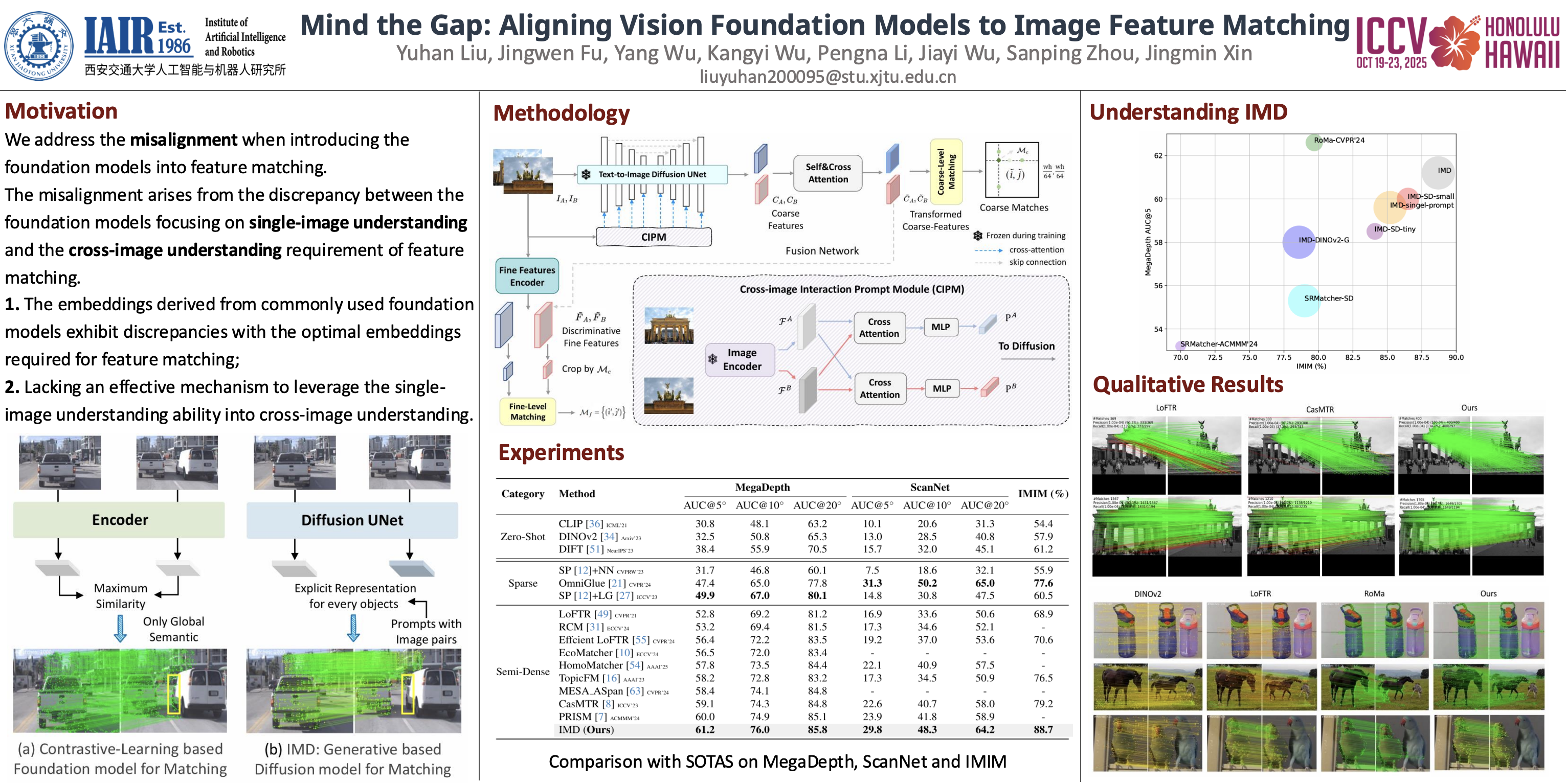 Leveraging the vision foundation models has emerged as a mainstream paradigm that improves the performance of image feature matching. However, previous works have ignored the misalignment when introducing the foundation models into feature matching. The misalignment arises from the discrepancy between the foundation models focusing on single-image understanding and the cross-image understanding requirement of feature matching. Specifically, 1) the embeddings derived from commonly used foundation models exhibit discrepancies with the optimal embeddings required for feature matching; 2) lacking an effective mechanism to leverage the single-image understanding ability into cross-image understanding. A significant consequence of the misalignment is they struggle when addressing multi-instance feature matching problems. To address this, we introduce a simple but effective framework, called IMD (Image feature Matching with a pre-trained Diffusion model) with two parts: 1) Unlike the dominant solutions employing contrastive-learning based foundation models that emphasize global semantics, we integrate the generative-based diffusion models to effectively capture instance-level details. 2) We leverage the prompt mechanism in generative model as a natural tunnel, propose a novel cross-image interaction prompting module to facilitate bidirectional information interaction between image pairs. To more accurately measure the misalignment, we propose a new benchmark called IMIM, which focuses on multi-instance scenarios. Our proposed IMD establishes a new state-of-the-art in commonly evaluated benchmarks, and the superior improvement 12\% in IMIM indicates our method efficiently mitigates the misalignment.