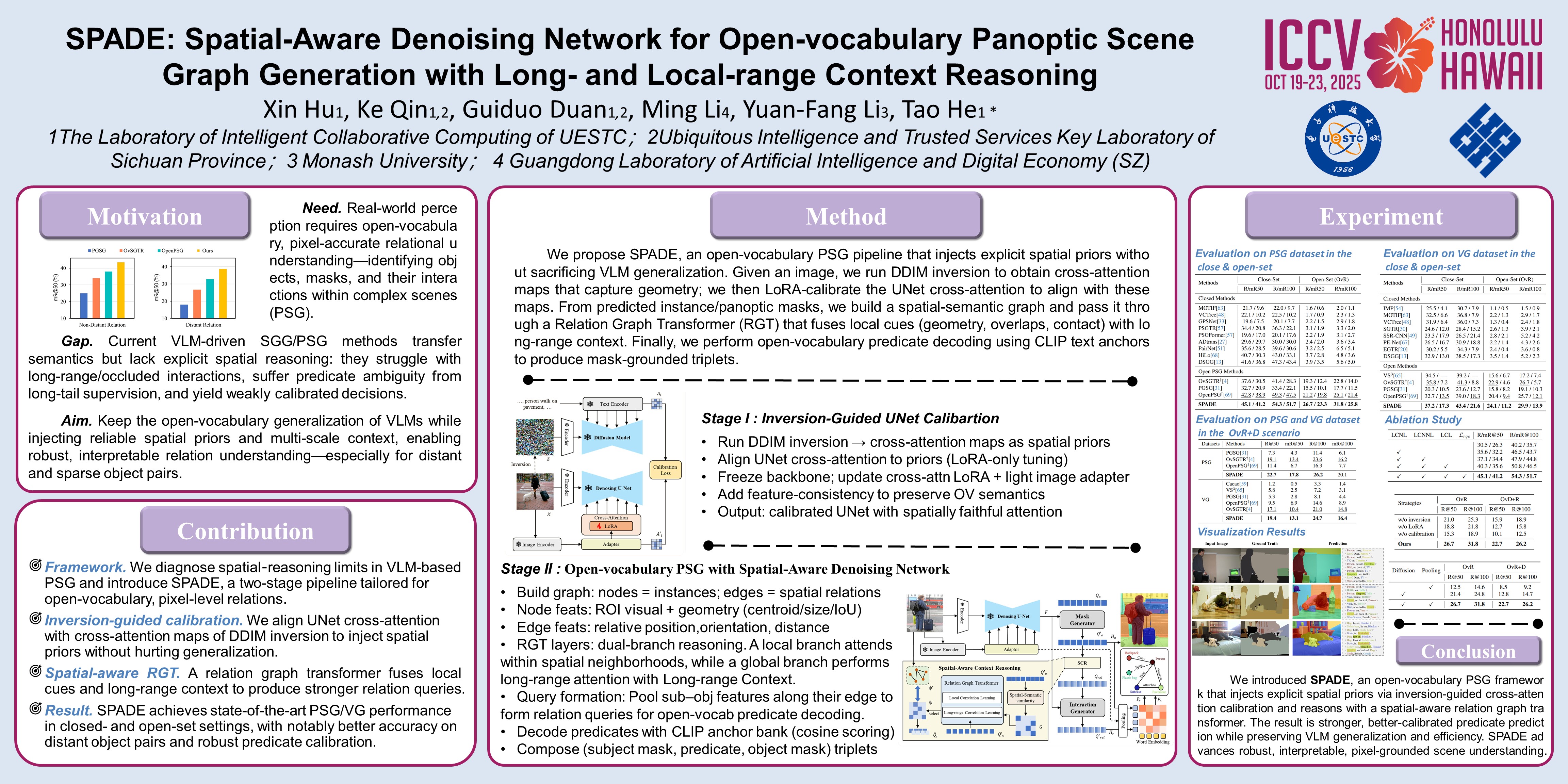 SPADE: Spatial-Aware Denoising Network for Open-vocabulary Panoptic Scene Graph Generation with Long- and Local-range Context Reasoning