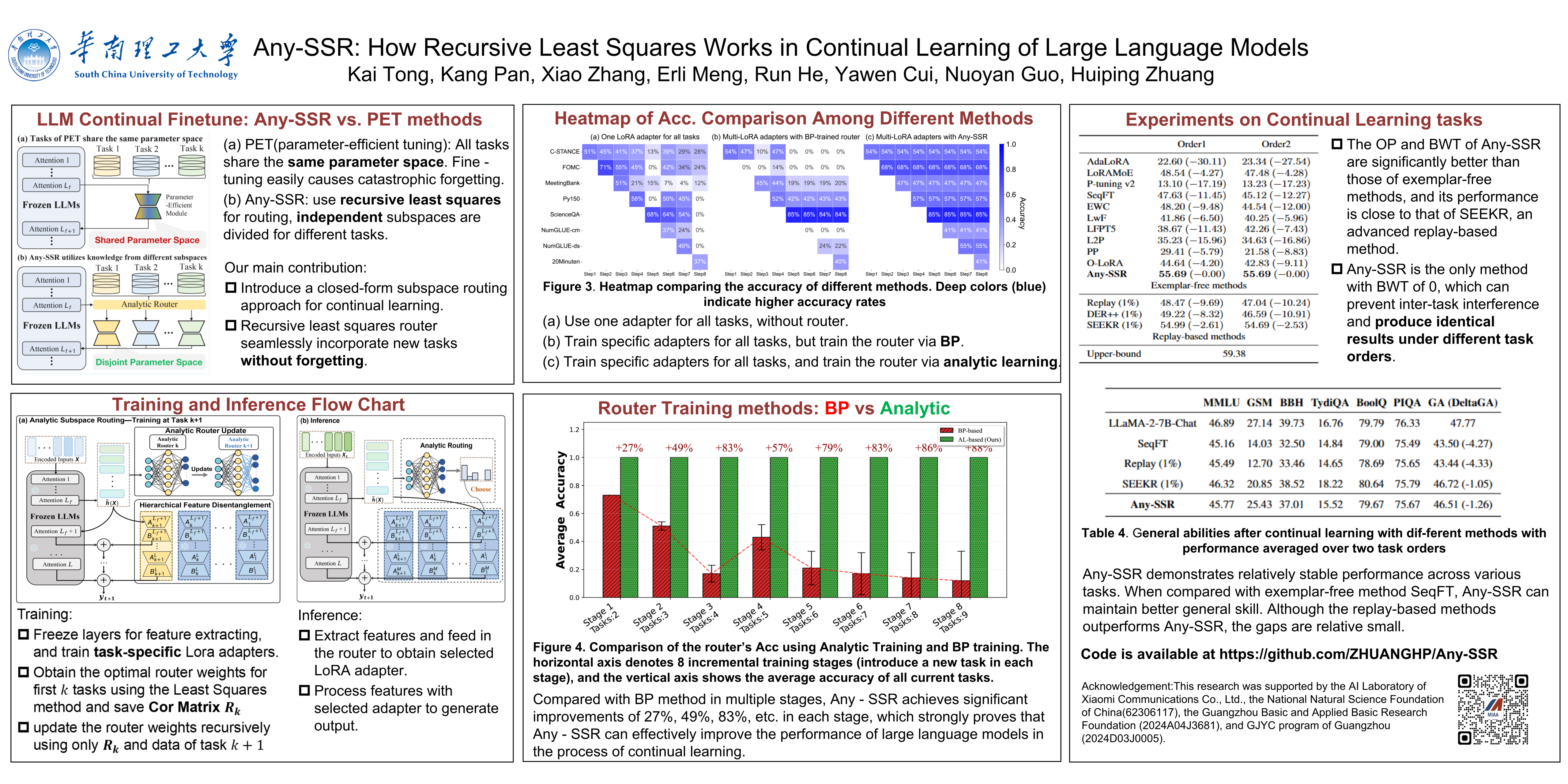 Any-SSR: How Recursive Least Squares Works in Continual Learning of Large Language Model