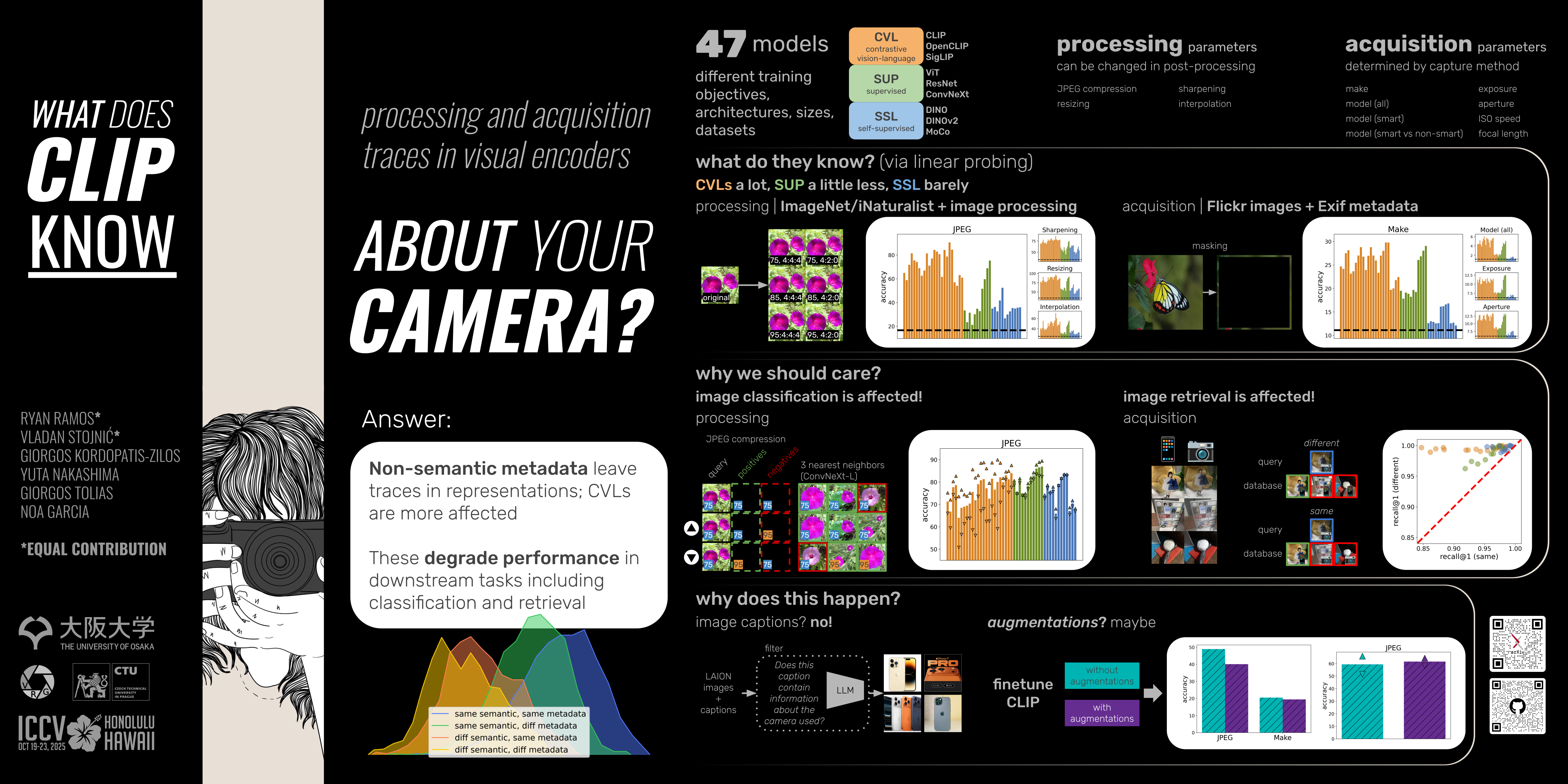 Processing and acquisition traces in visual encoders: What does CLIP know about your camera?