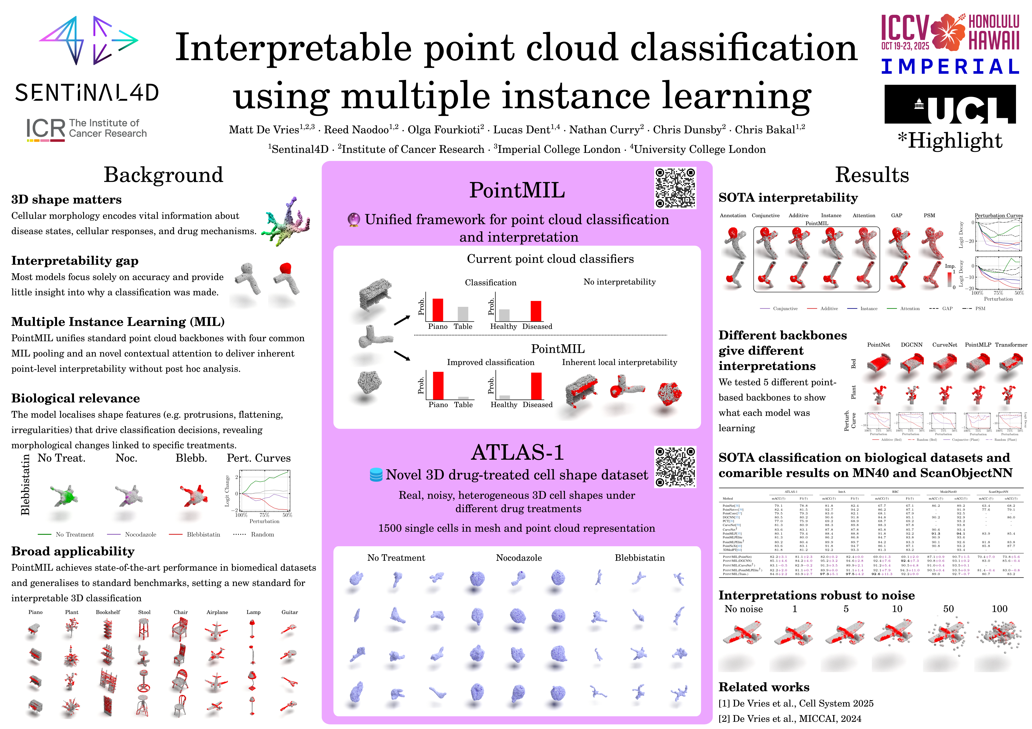 Understanding 3D cell shape is crucial in biomedical research, where morphology serves as a key indicator of disease, cellular state, and drug response. However, existing 3D point cloud classification models often lack interpretability, making it difficult to extract biologically meaningful insights. To address this, we propose PointMIL, an inherently interpretable point cloud classifier using Multiple Instance Learning (MIL). Unlike other methods that rely on global interpretations, PointMIL simultaneously improves accuracy of point cloud-based classifier backbones and provides fine-grained, point-specific explanations, pinpointing the most informative regions of 3D shapes, without requiring $\textit{post-hoc}$ analysis. We demonstrate PointMIL on two publicly available datasets of biological cells showing state-of-the-art mACC (97.3\%) and F1 (97.5\%) on the IntrA biomedical dataset. Additionally, we introduce a novel dataset of drug-treated cancer cells (Morph3DCell), to show PointMIL's ability to reveal the morphological effects of drug treatments at a fine-grained level, with implications for drug discovery and mechanism-of-action prediction. Beyond biomedical applications, we show that PointMIL also offers quality interpretations and improves the classification accuracy on standard shape benchmarks such as ModelNet40 and ScanObjectNN, demonstrating its generalisation to broader 3D object recognition tasks.