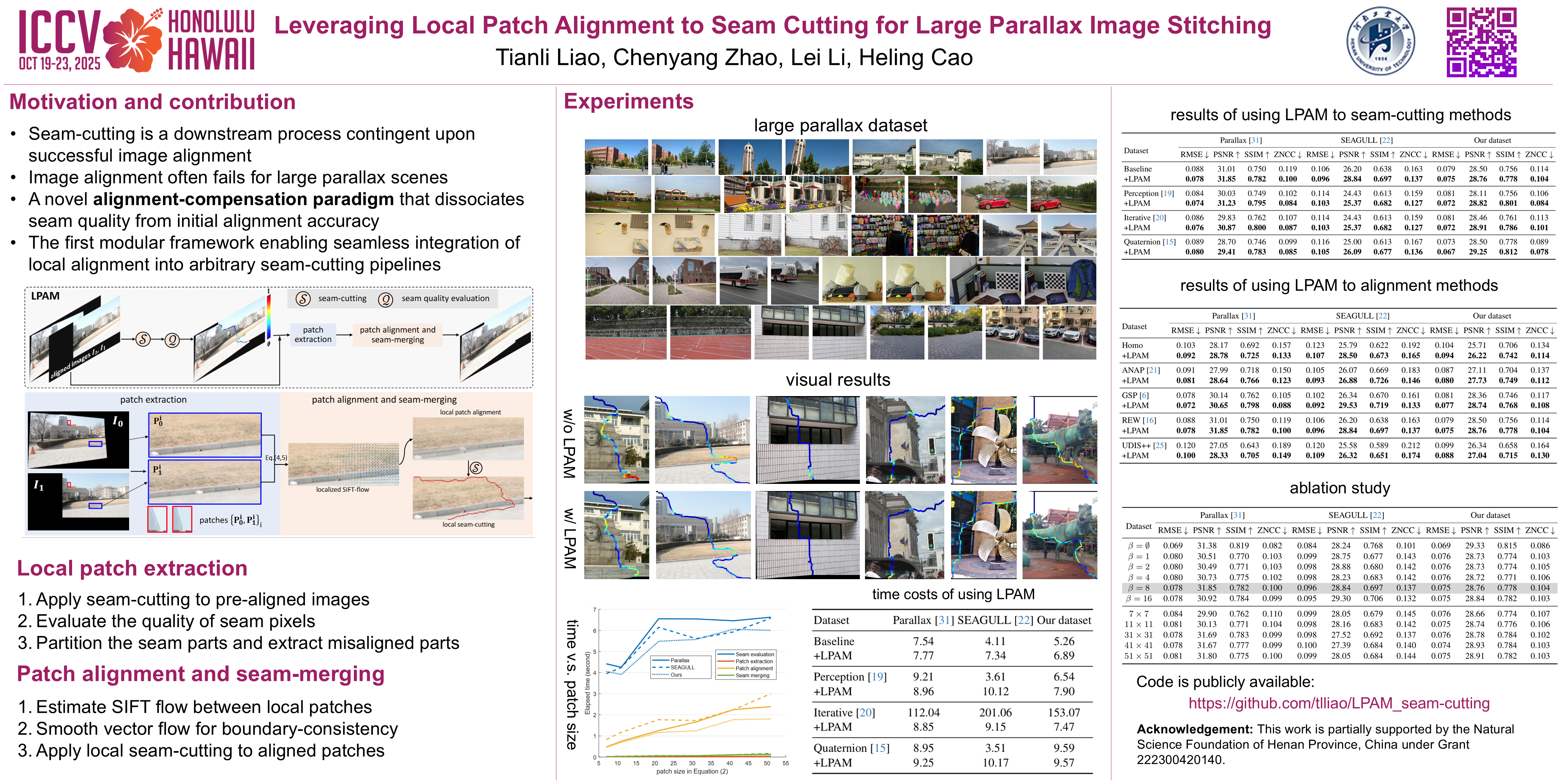 Leveraging Local Patch Alignment to Seam-cutting for Large Parallax Image Stitching