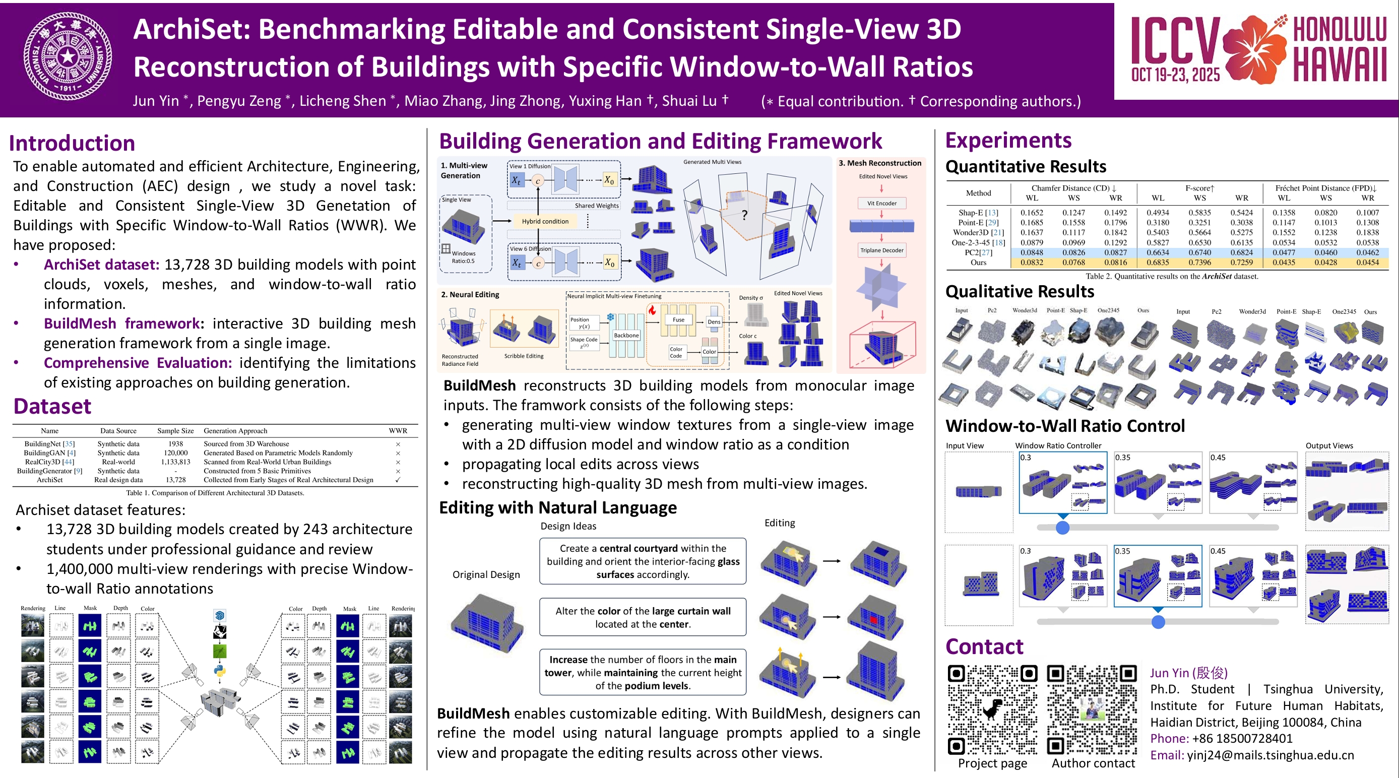 Image-based 3D reconstruction has made significant progress in typical scenarios, achieving high fidelity in capturing intricate textures. However, in the Architecture, Engineering, and Construction (AEC) design stages, existing technologies still face considerable challenges, particularly in handling specific window-to-wall ratios, ensuring window detail consistency, and enabling interactive editing. To address this research gap and encourage greater community attention on this practical architectural design problem, we propose a new task: Editable and Consistent Single-View 3D Reconstruction of Buildings with Specific Window-to-Wall Ratios. To accomplish this: 1) We introduce the ArchiSet dataset, the first public, real-world architectural design dataset, including 13,728 3D building forms in the format of point clouds, voxels, meshes, and window-to-wall ratio information, providing comprehensive support for 3D architectural design research. The dataset also contains over 1,482,624 images in three types—sketches, color block diagrams, and renderings—accompanied by paired window masks for detailed evaluation. 2) We evaluated state-of-the-art single-view 3D reconstruction algorithms on ArchiSet, identifying several limitations, such as the loss of volumetric detail, incomplete window details, and limited editability. 3) We introduce BuildingMesh, a diffusion model specifically designed for generating and editing 3D architectural forms from a single image with customizable window-to-wall ratios, suitable for dynamic architectural design workflows. We propose an regularized method to ensure window consistency. Our framework also includes an interactive module for easy further editing, enhancing platform efficiency and accuracy in professional architectural design workflows. Experimental results demonstrate that BuildingMesh achieves high-quality 3D generation with improved design flexibility and accuracy.